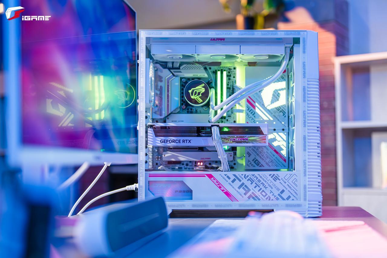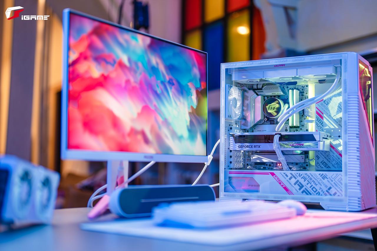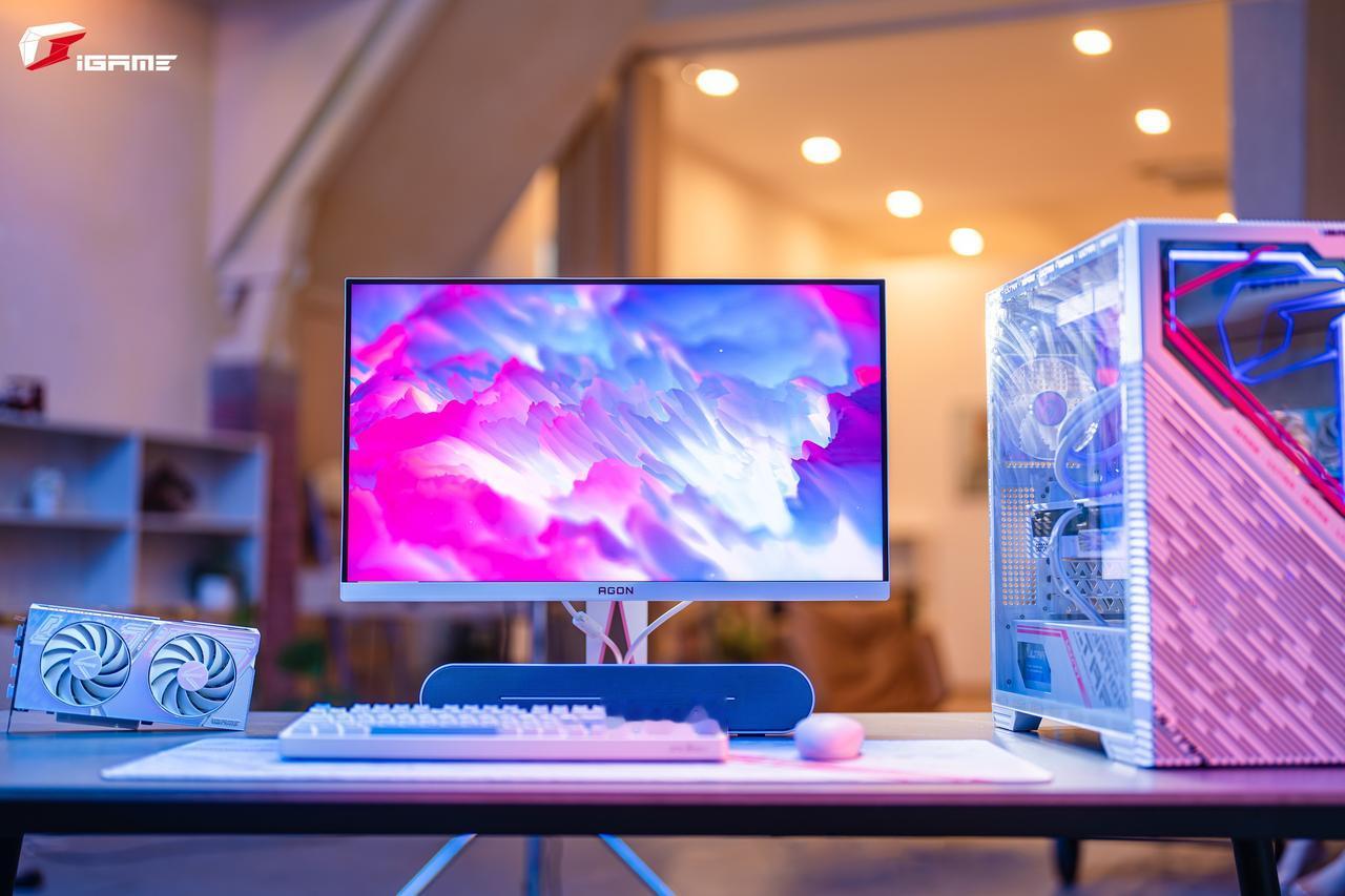 七彩虹iGame Ultra Family DIY电脑+AGON AG275QXR显示器桌搭,这一套纯白风格的主机和显示器真的是很好看呀!