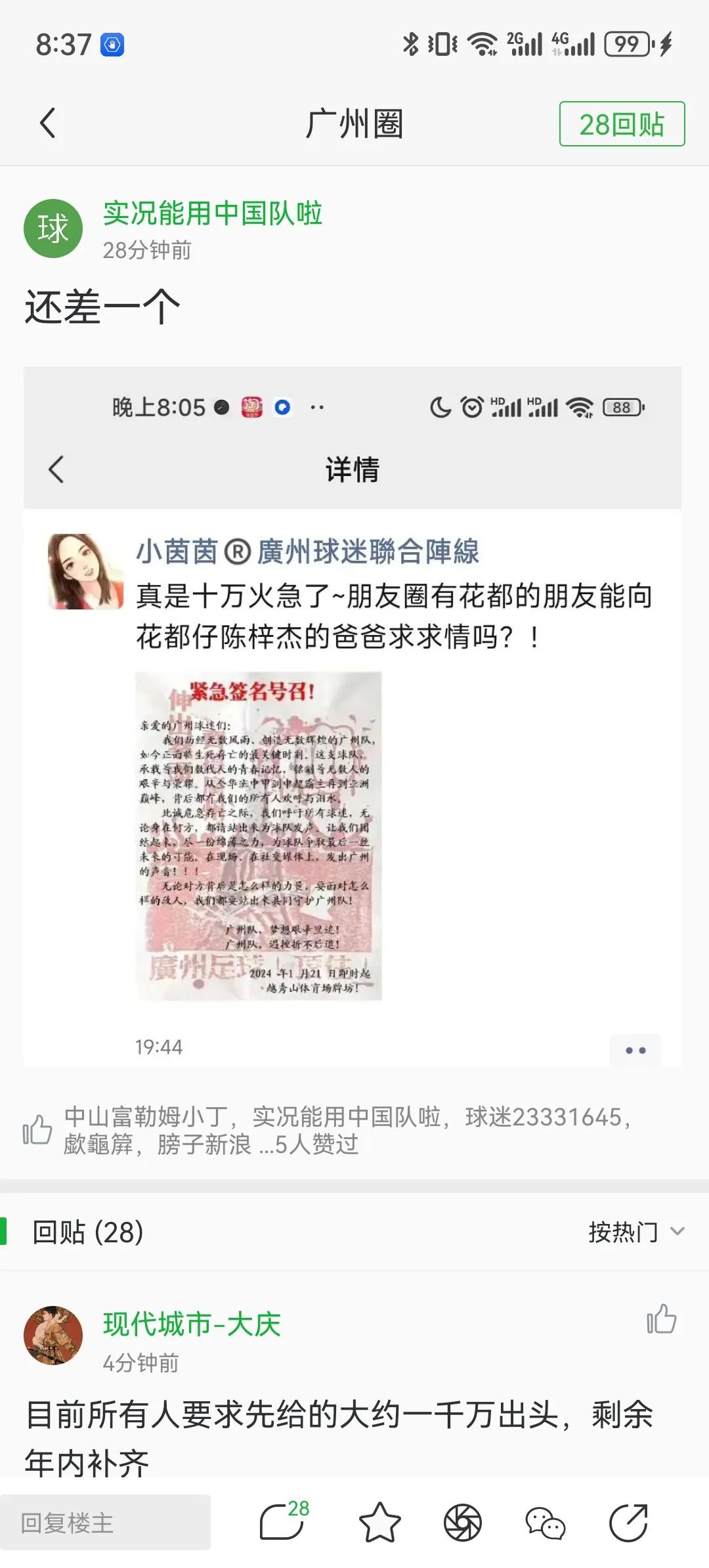 陈梓杰,能不能高抬贵手?还差你一个了!虽然欠债还钱,天经地义。但是广州队如果因为你一个人而解散,你作为广州仔能过意的去?尽快接受分期吧,谢谢你了!最后十二个小时了!