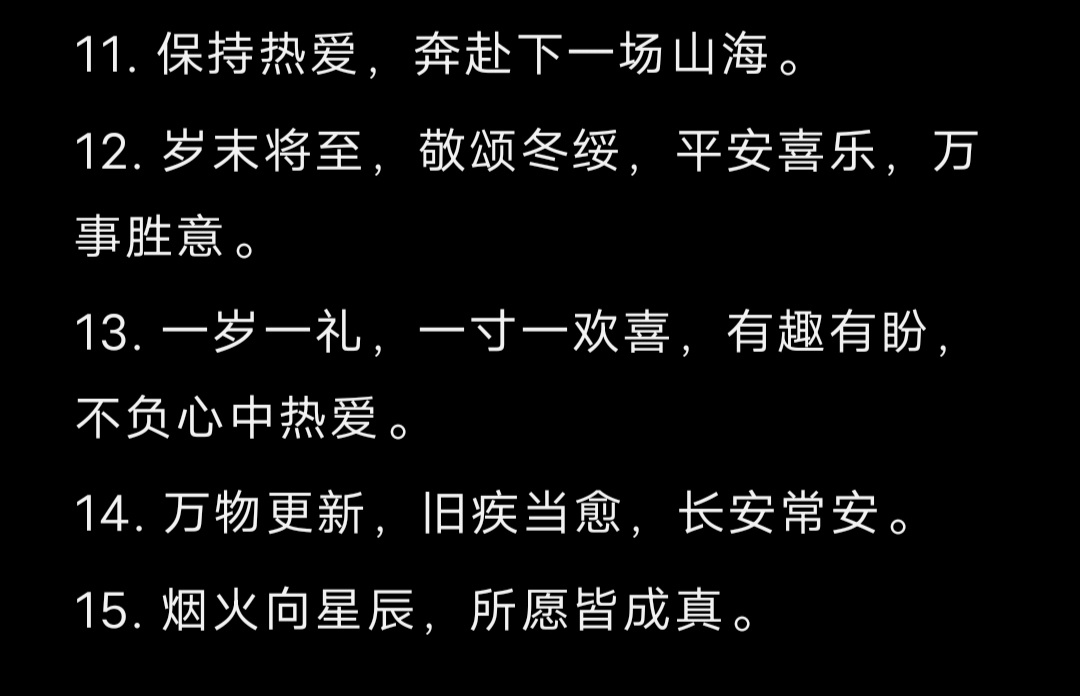 12. 岁末将至,敬颂冬绥,平安喜乐,万事胜意。