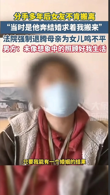 北京昌平,一男子与女友同居两年后,因性格不合要求分手。但女子不同意且拒绝搬走。男子多次劝说无果后,只能自己搬走并到法院起诉收回房子。可法院要求女友母女俩腾房时,女友母亲却要求男子对其女儿负责。但此时女友已经霸占房子15年。