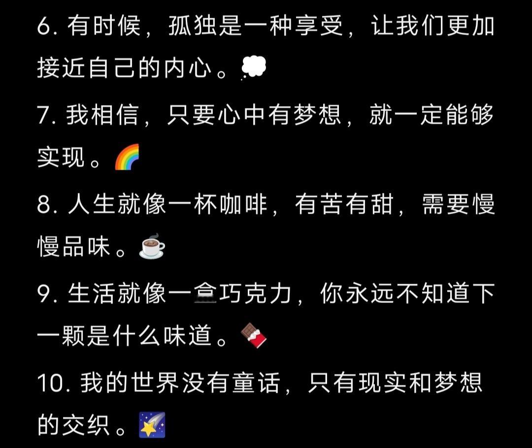10. 我的世界没有童话,只有现实和梦想的交织。🌠