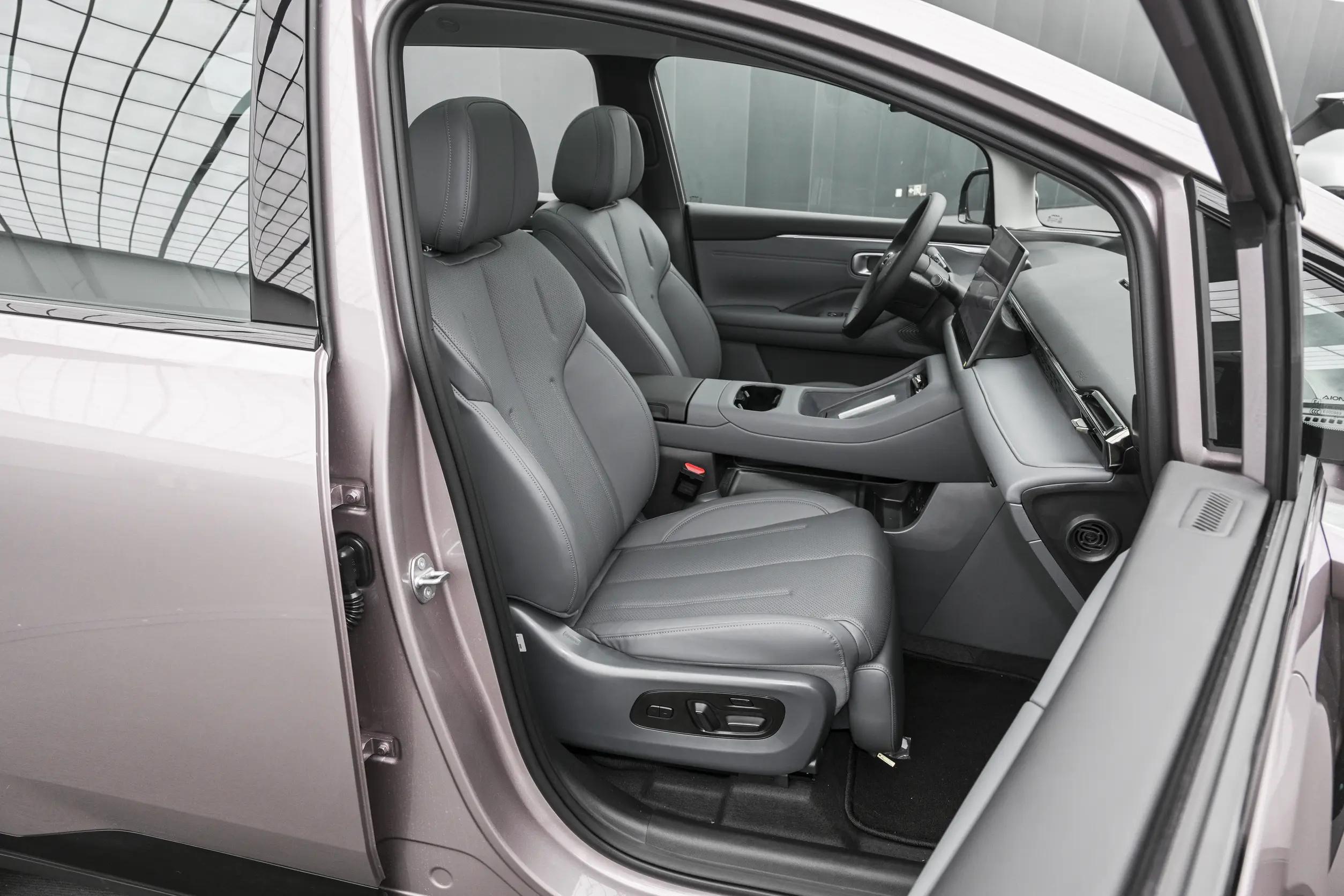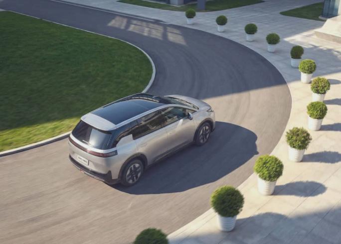 车头采用了全新的设计语言,官方叫“星际几何”。前脸最吸睛的当然是那条贯穿式的星环灯带,晚上点亮之后辨识度很高。而且它是带发光车标的,这玩意儿虽然没什么用,但看着确实有种精致感。车身侧面是那种略带MPV风格的轮廓,这种设计的好处咱们后面聊空间的时候再说。