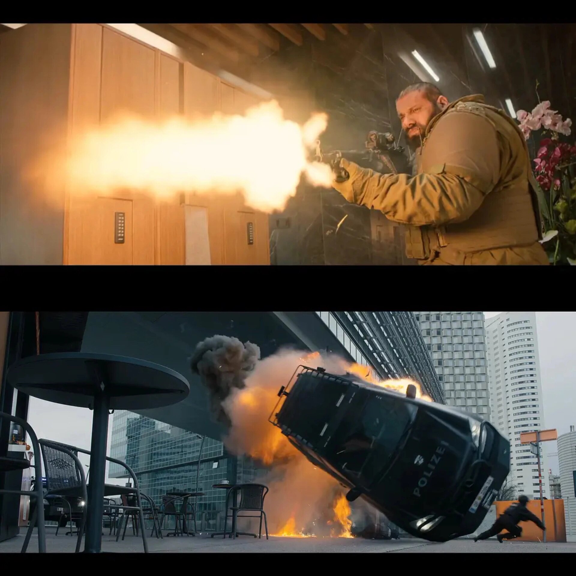 电影名:《惊天营救 2》 《惊天营救 2》一项致命任务,解救被黑帮残忍虐待的家庭。不仅在动作上更上一层楼,而且还加重筹码。 在这段长镜头中,男主保护一对母子从一座人满为患的监狱中逃出,穿过充满火焰与爆炸的牢房,以及应对数十名囚犯的骚乱和暴动,然后进入森林展开一场惊险的汽车追逐,最后登上一辆高速行驶的火车,在那里他们遇到了更多的坏人以及一架武装直升机。