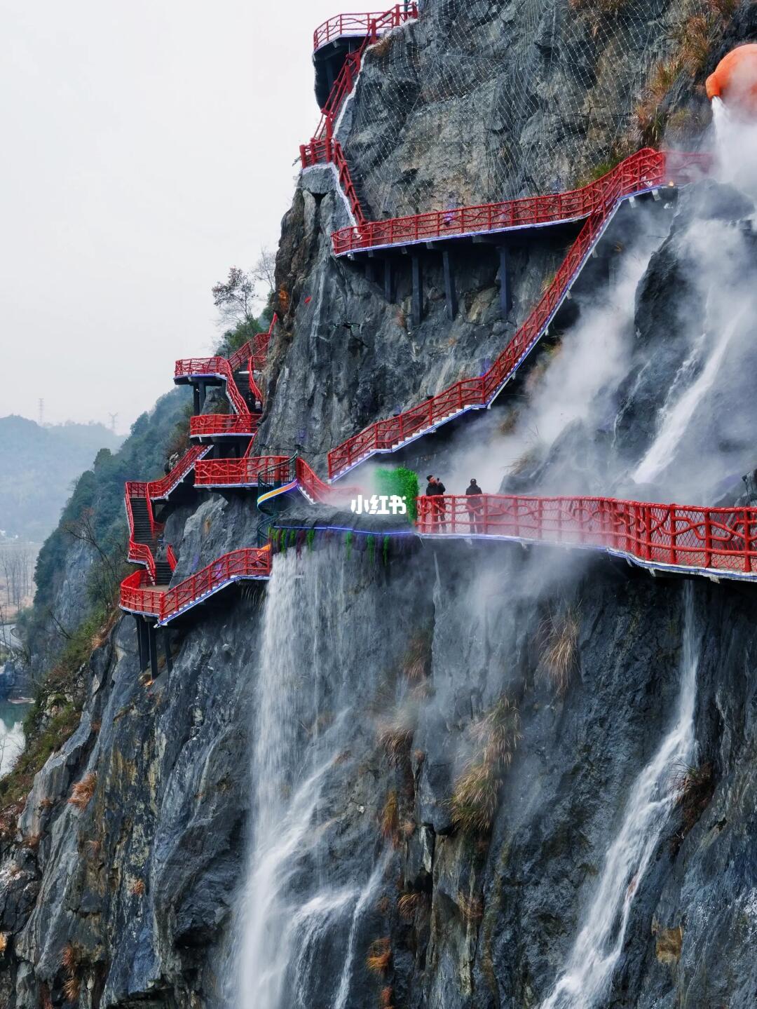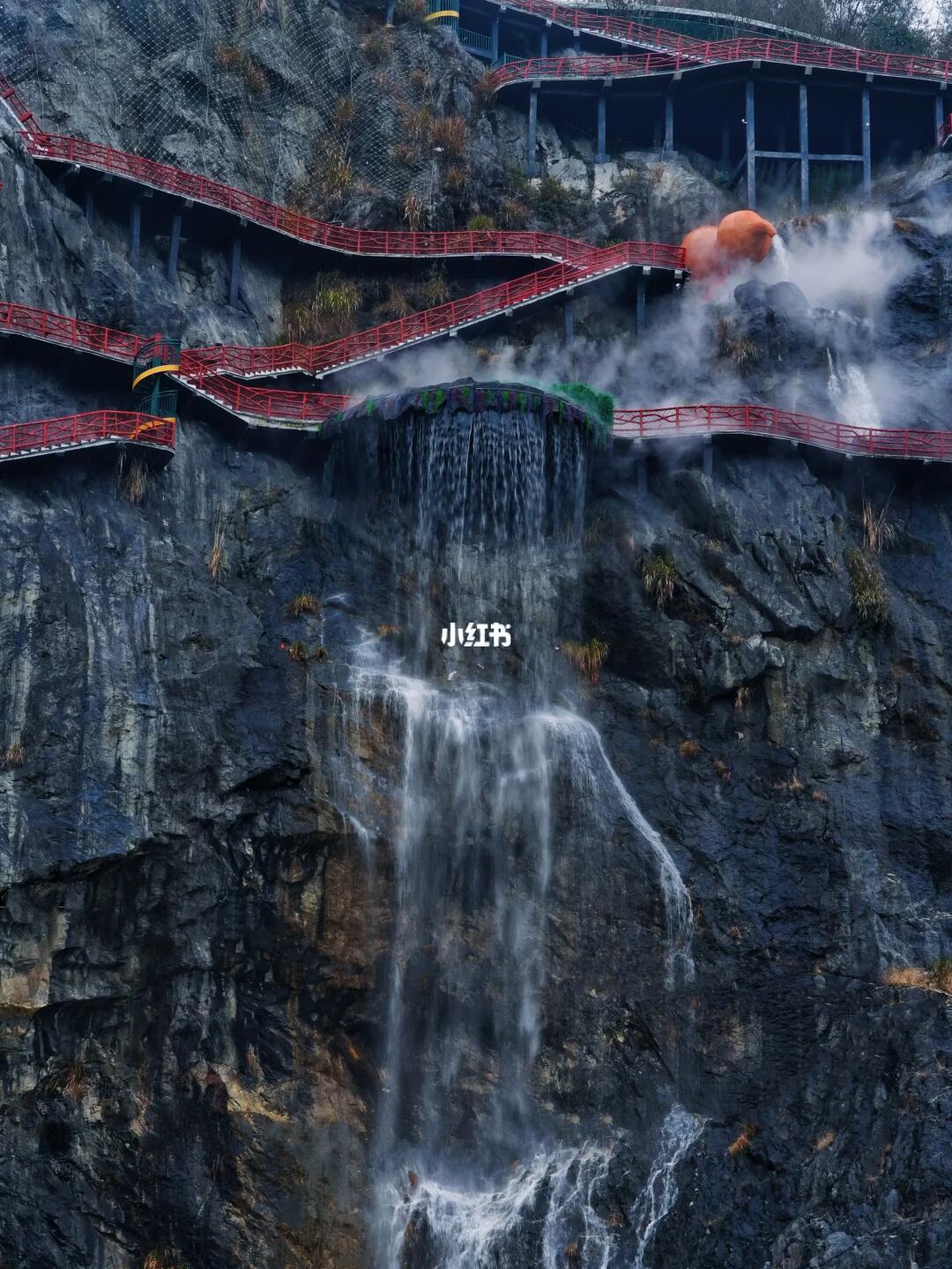 ✅悬崖瀑布:站在瀑布下拍照,真的绝美。据说威亚表演,可租汉服,体验一把仙侠