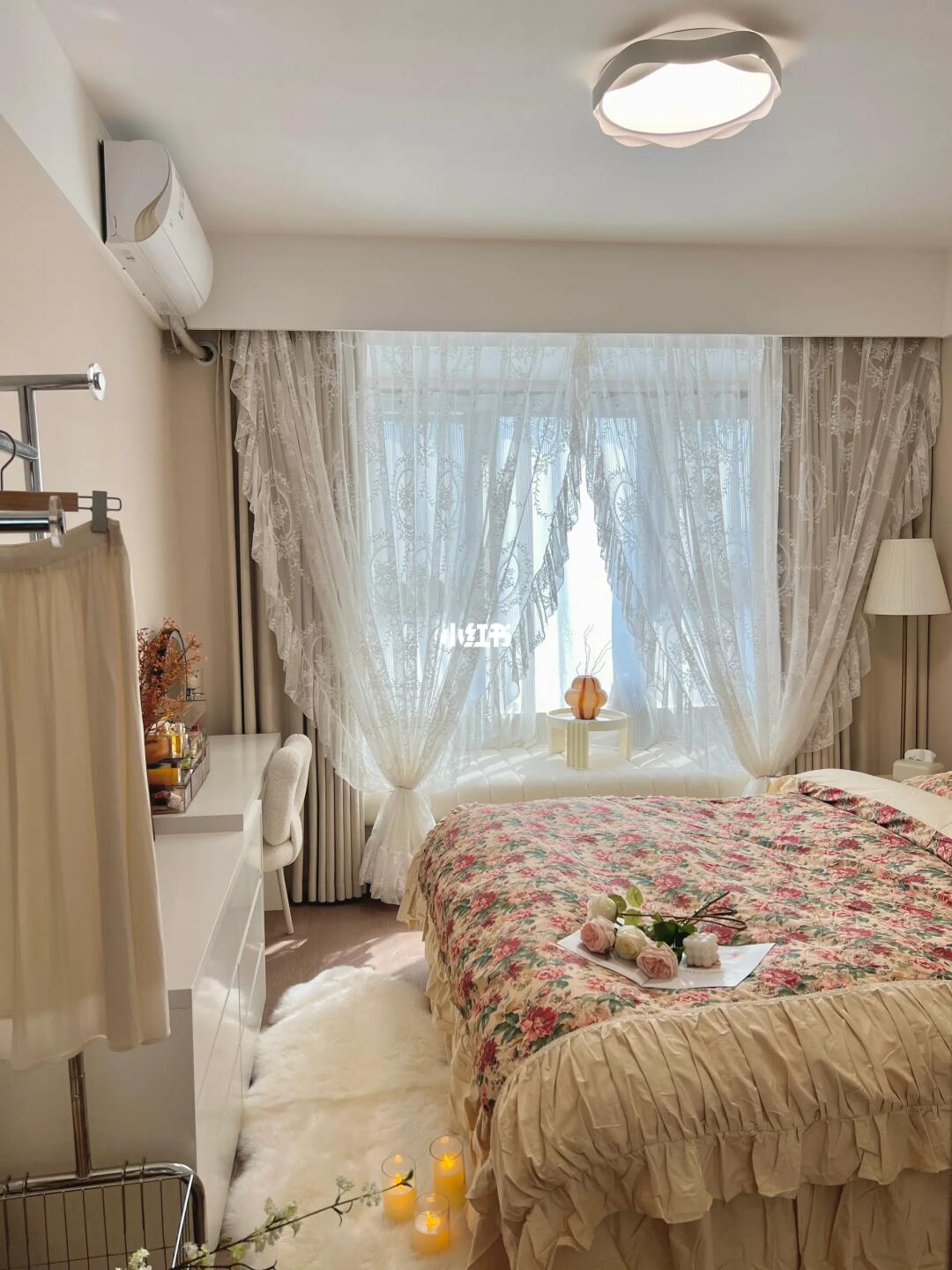 我的卧室很简单,但不妨碍我喜欢 没有复杂的装修,没做吊顶和衣柜 在预算有限的情况下更加注重软装 即使入住了一年仍让我反复心动~ 尤其是阳光洒在飘窗垫的时候 整个人都被治愈了☀️ · 给软软的棉花糖床换上新的四件套 在奶油花边吸顶灯的照射下 房间的每一处角落都美到了心里 其实,卧室不需要多复杂的装饰 阳光就是最好的风景🌅