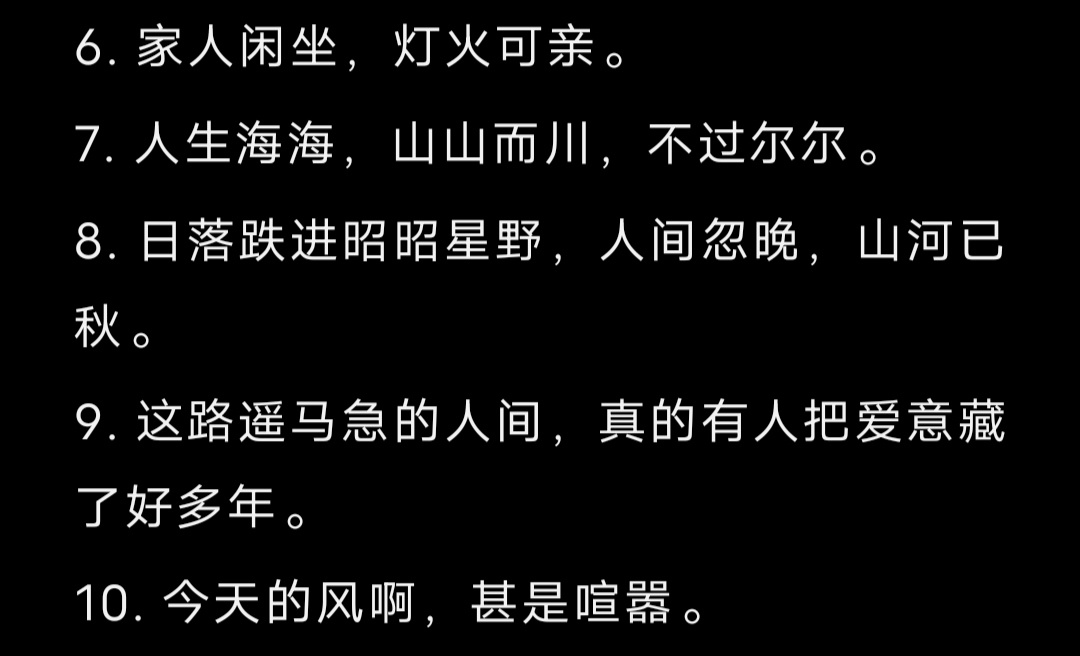 8. 日落跌进昭昭星野,人间忽晚,山河已秋。