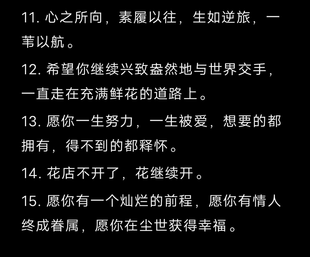13. 愿你一生努力,一生被爱,想要的都拥有,得不到的都释怀。