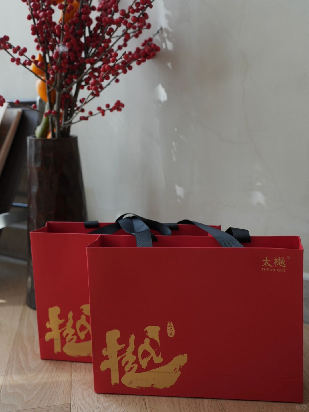 属于中国气质的龙年礼盒,采用烫金工艺,手写樾字,搭配高级中国红,简雅精致。🎁