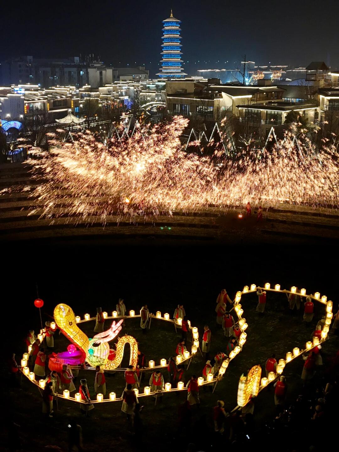 日常每天在抱玉塔都有演出,春节期间的打铁花全面升级,地址也不一样,表演会更多更震撼❗
