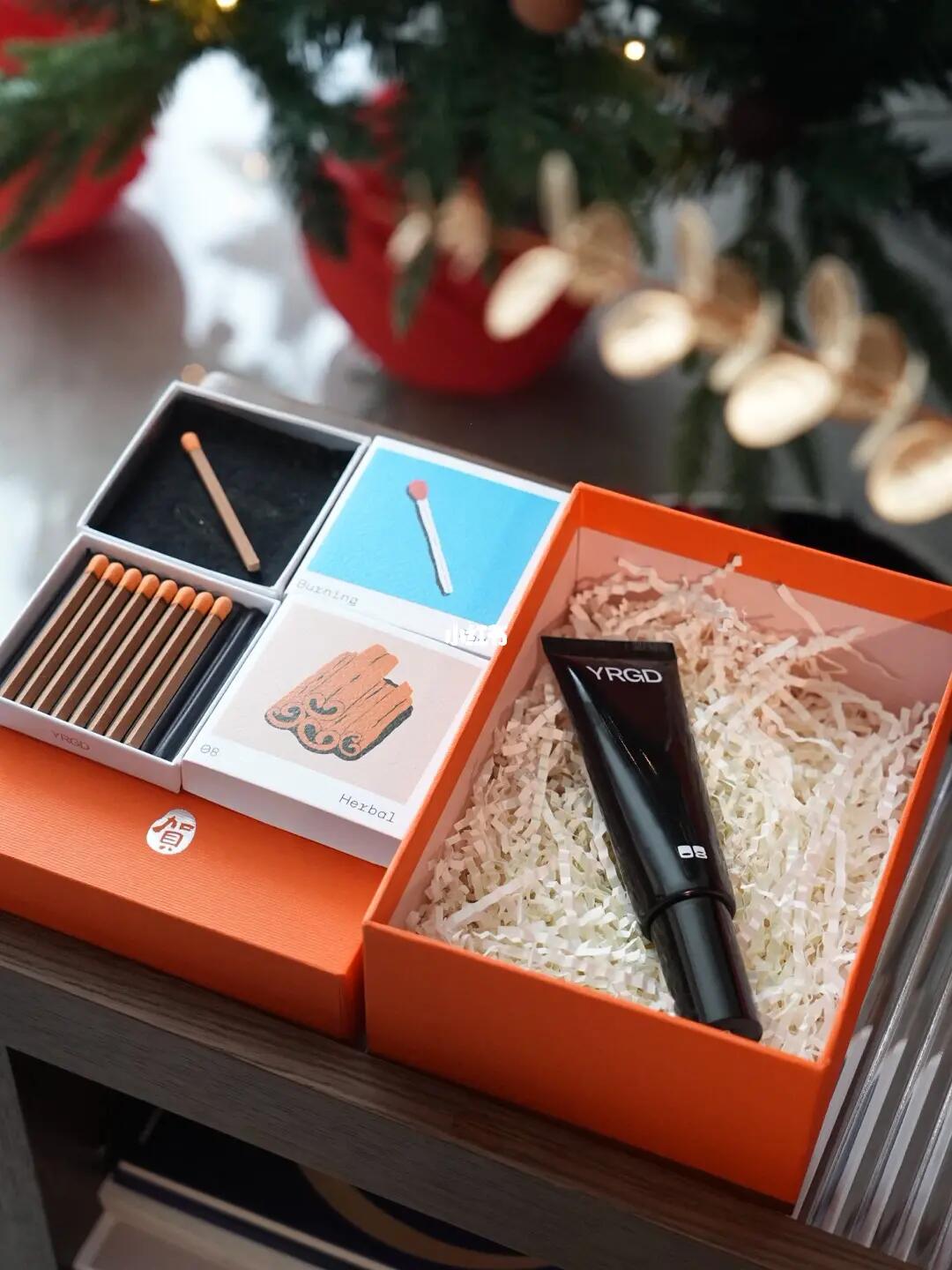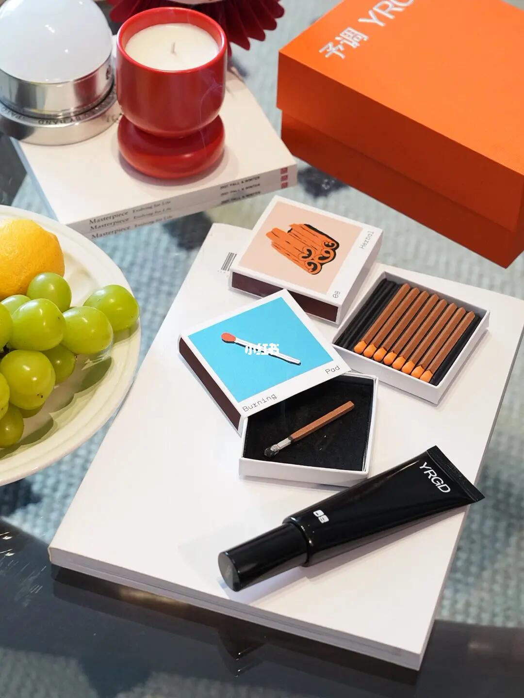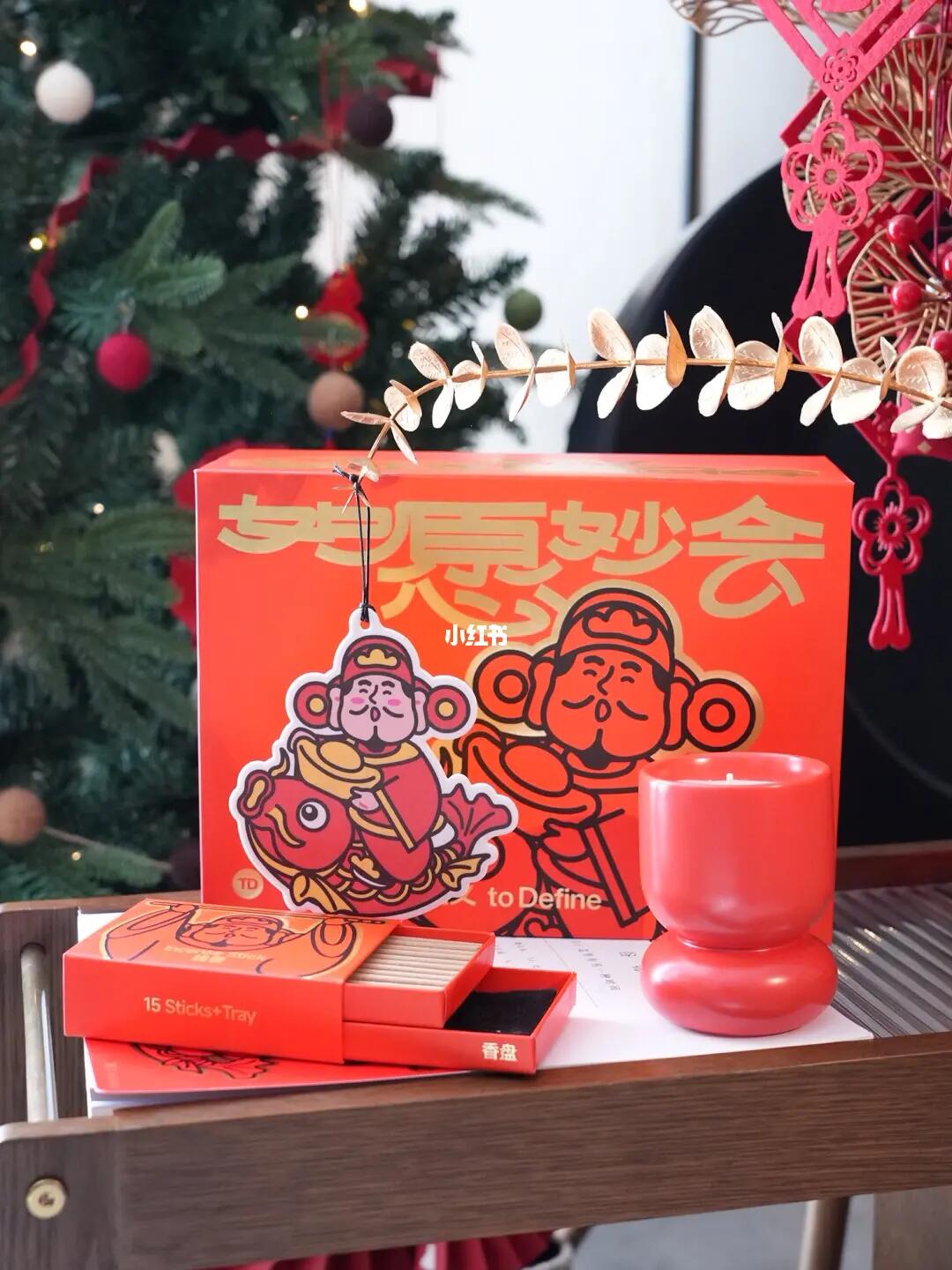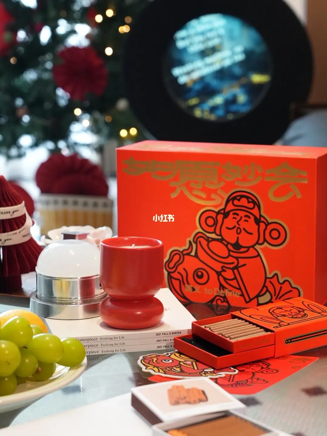 大红色的香薰蜡烛太应景,线香深遂安宁