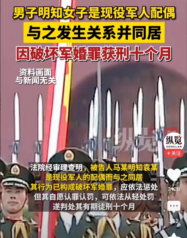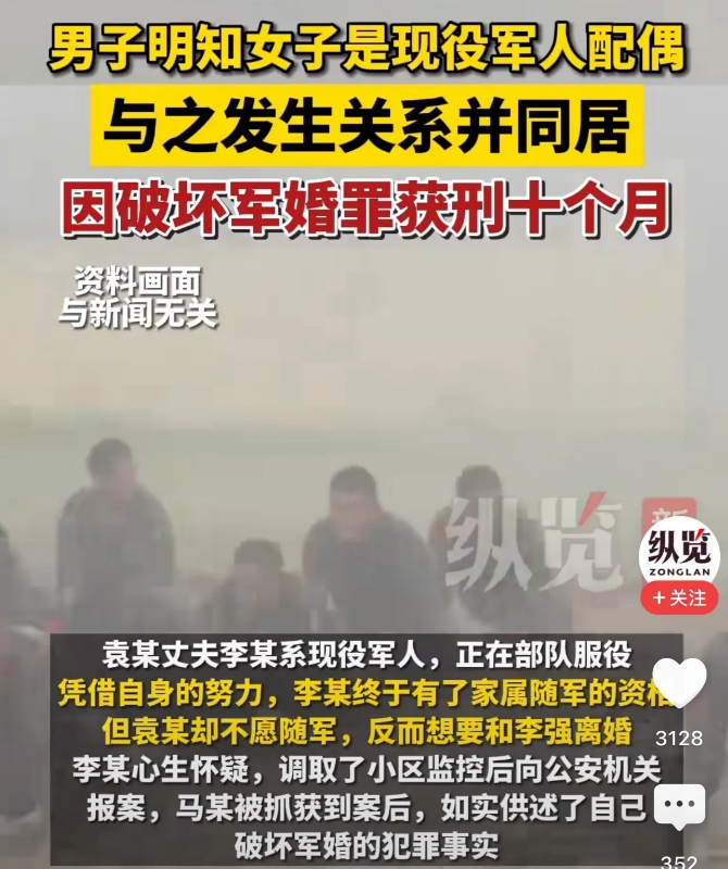 作为军人的一方如果出轨,也应该判,这样就更合理了。
