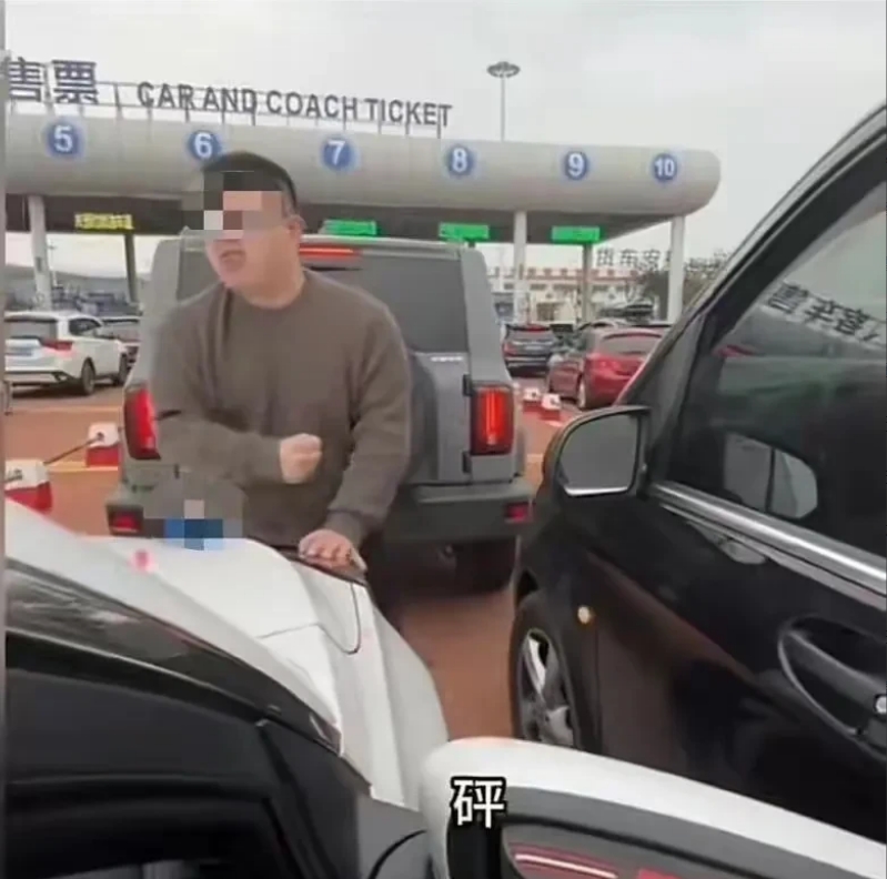 近日,在广东湛江,一奔驰男疑似加塞失败后,直接怒气冲冲的将车停下,而后拦车辱骂正常驾驶的白车车主,并多次用拳头打砸白色小车的引擎盖,致使引擎盖凹陷。