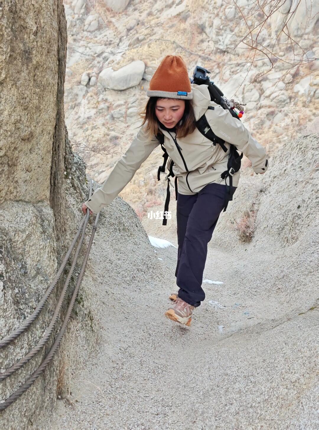 沿着土路、大石头攀爬而上
