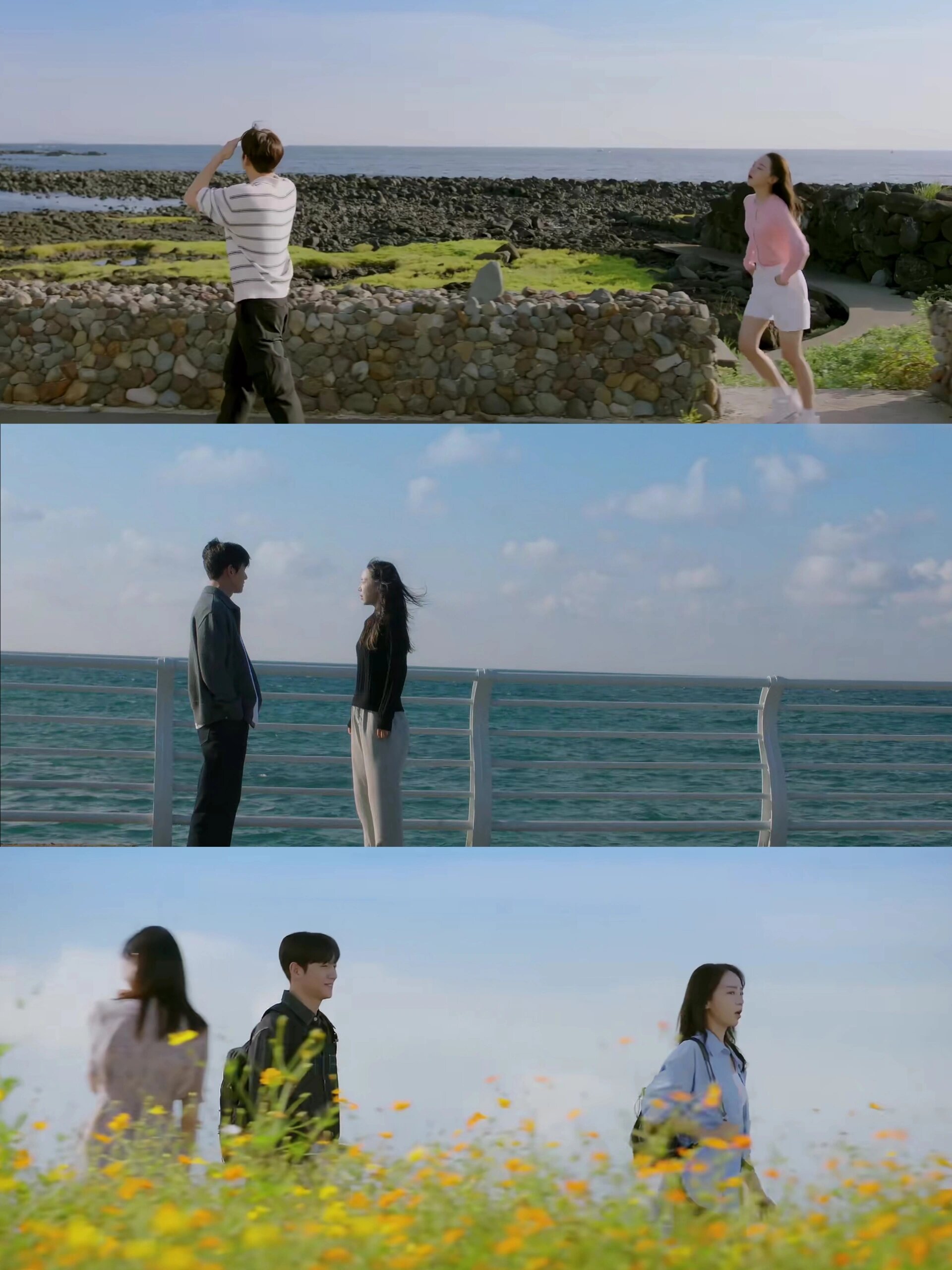 碧蓝清澈的大海、舒朗的海风、海浪拍打过的岩石、海腥味的鱼虾……在大海和蓝天的映衬下谈一场恋爱原来是这么美。池昌旭、申惠善面朝大海肩并肩坐着就是一幅赏心悦目的爱情画卷。他在前面走着,她在后面跟着,亦或是反过来,就是一场青春活力的爱情约定。弥漫的荷er蒙混合着海与风的味道立马甜迷糊了,不需要冗余的故事,看到风景的那一刻,心灵瞬间得到了治愈。