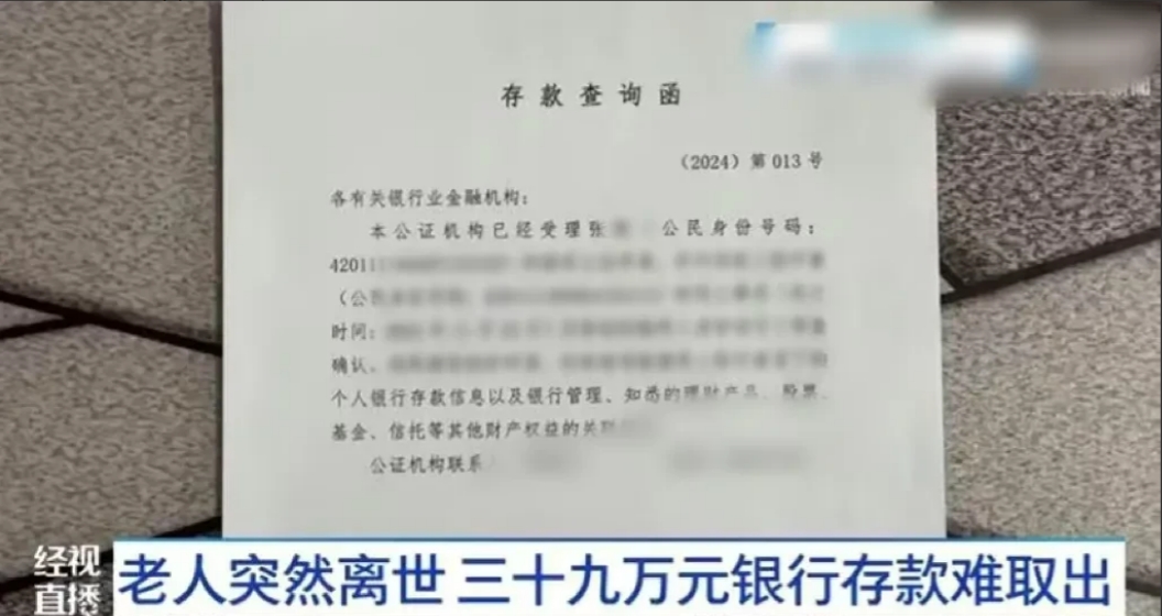 张女士含泪为父亲料理完后事,就着手处理老人生前的遗物,经过一番查询了解到,父亲在银行里还有39万的存款,于是,张女士和母亲一起来到了银行,打算把这笔钱都取出来。