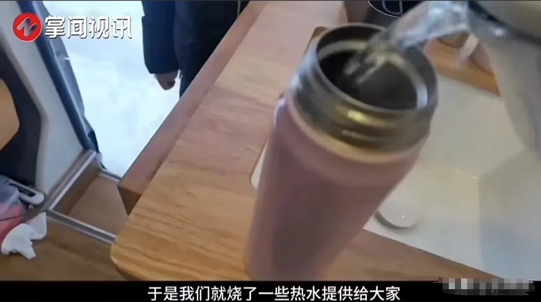 于是女生很是同情他们,连忙烧了几壶热水,分给周围车辆上的人,让他们能够泡泡面!