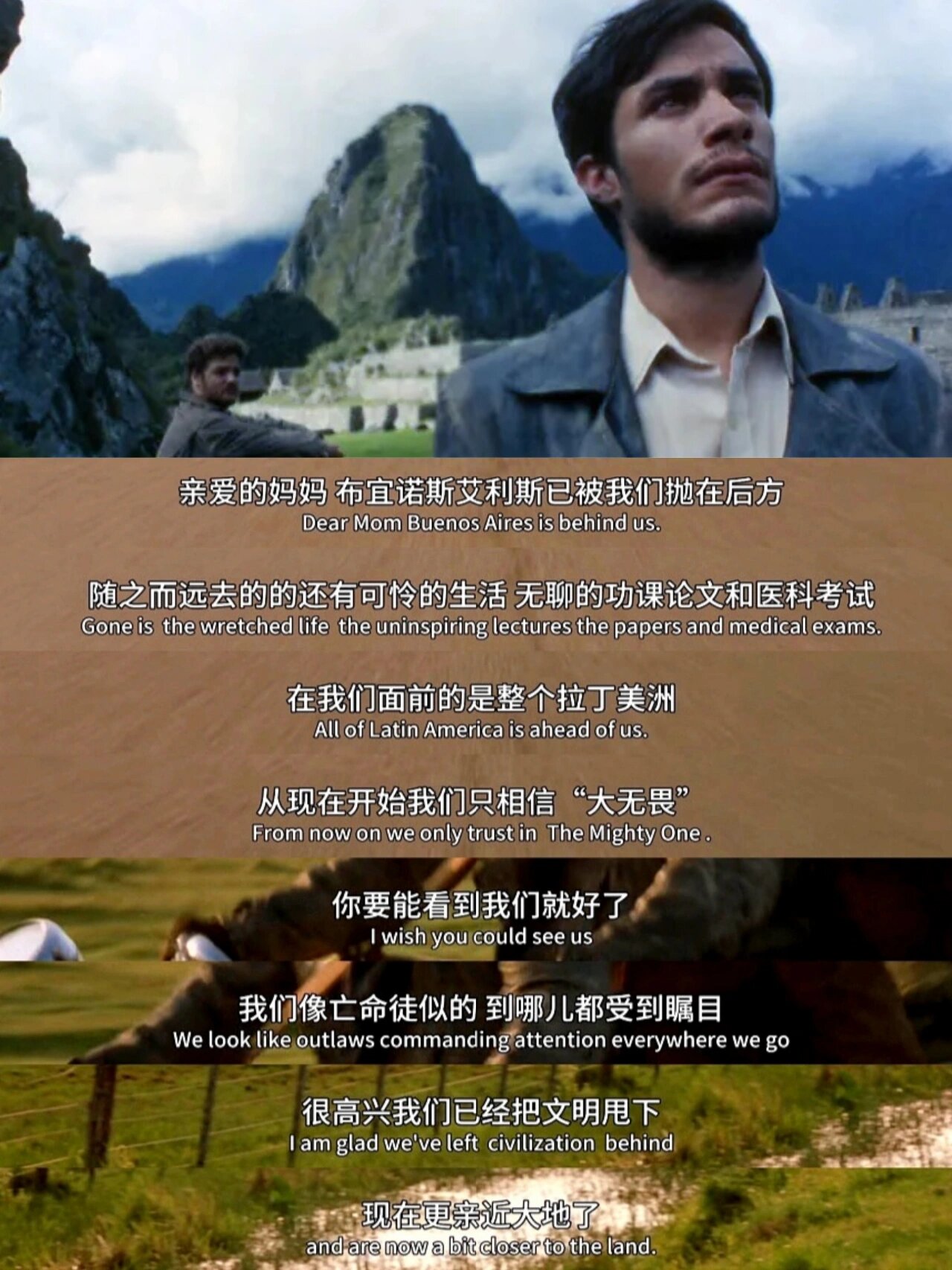 🛣️一路上,壮阔的南美风景,独特的印加文化,震撼的马丘比丘遗址,亚马逊深处的麻风村庄,让他们同时见识到了南美大地的富饶与贫瘠,也让格瓦拉开始意识到:学医无法改变现状。