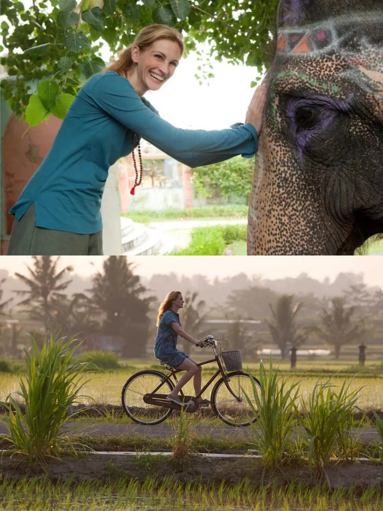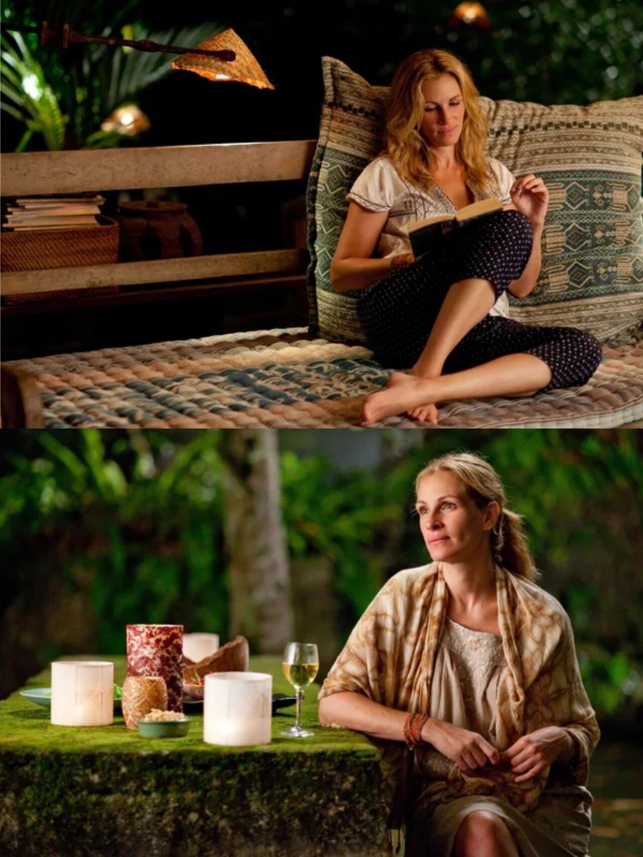 伊丽莎白是《纽约时报》的一名人气作家✍🏻,有着优秀的丈夫,成功的事业和优渥的生活,但失去激情的生活让她日渐崩溃,她离婚,很快又恋爱,又在新感情里迷茫,像是掉进惯性的情感旋涡,“没有激情、没有活力、没有信仰,一点生命力都没有”于是,她决定用为期一年的旅行去学会自处。她先后去了罗马、印度、巴厘岛。