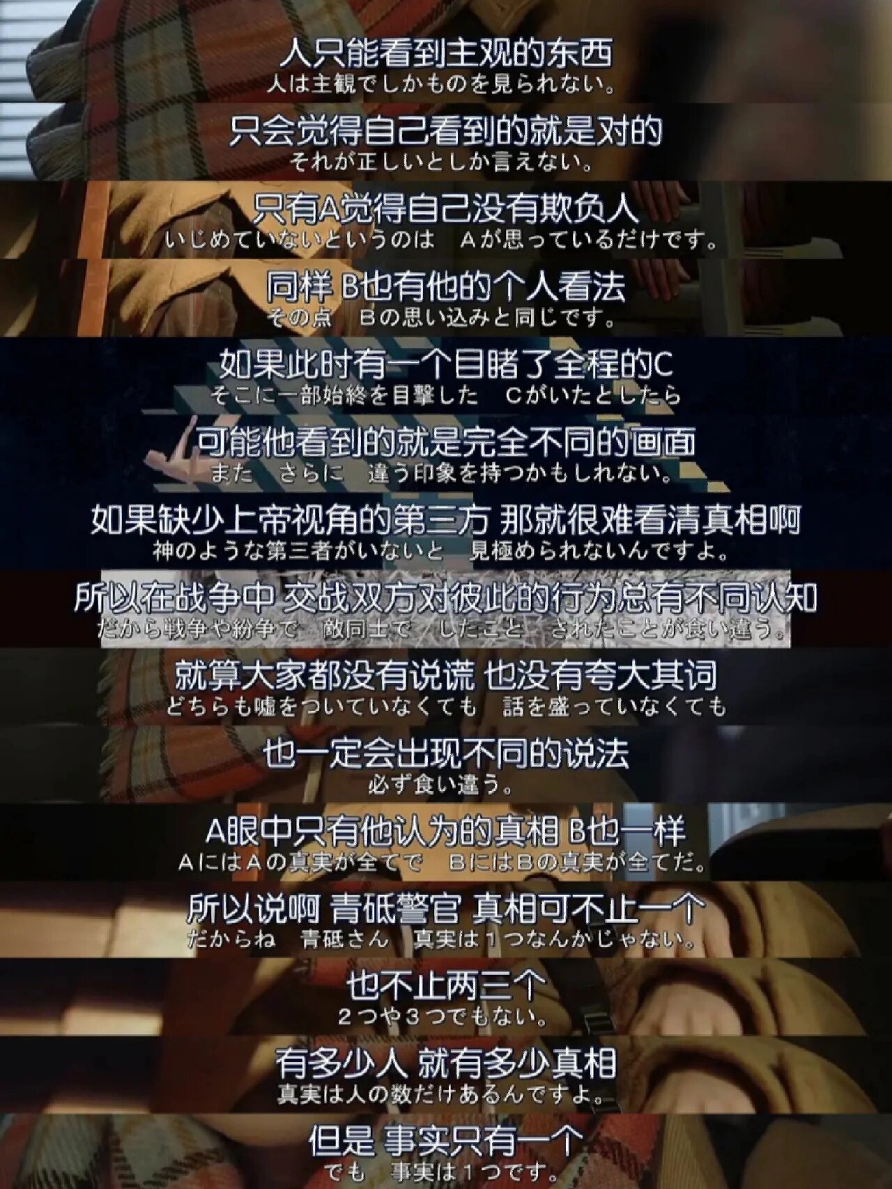 ——“人只能看到主观的东西,有多少人,就有多少真相。”