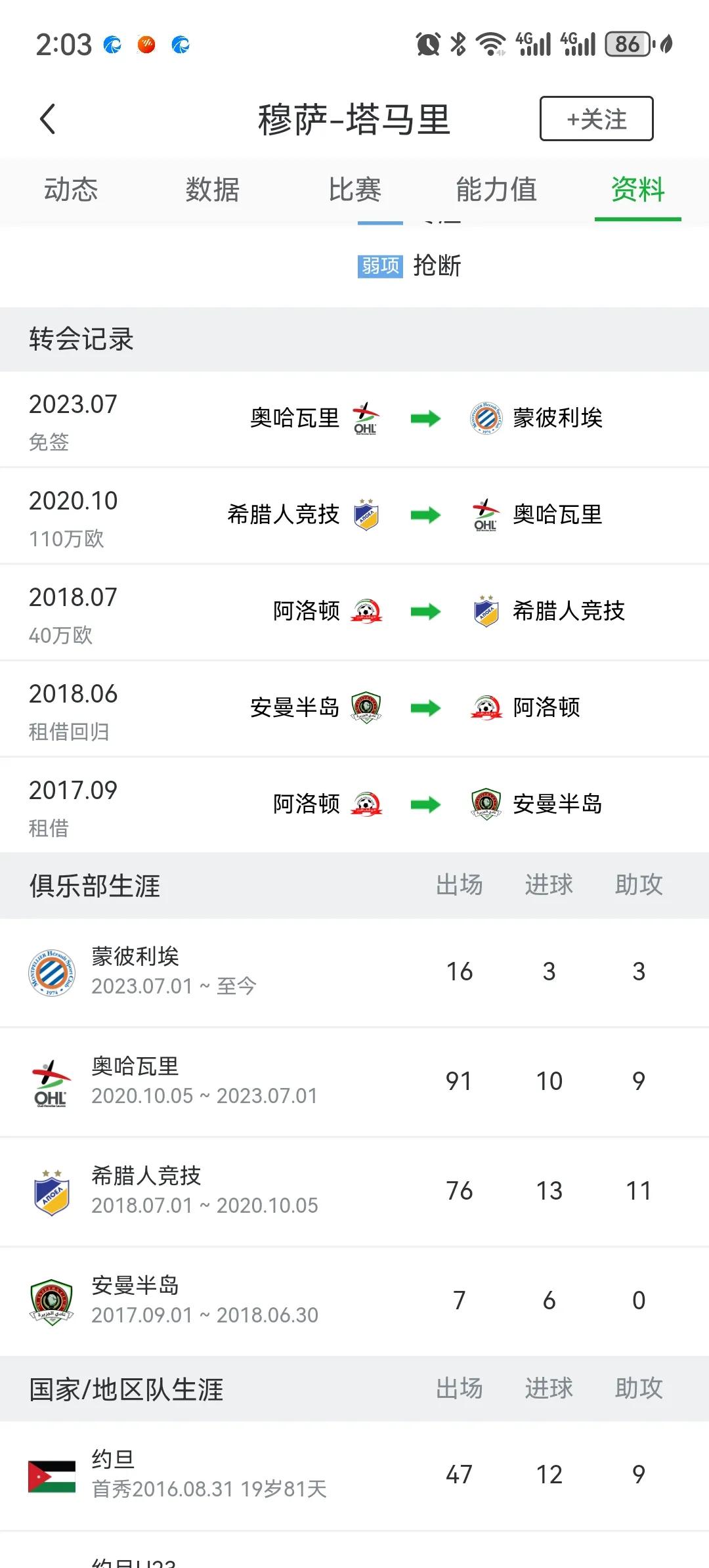 本届亚洲杯大放异彩的约旦10号塔马里,他的职业生涯非常励志。很少有人知道的是,他其实是一名来巴勒斯坦的难民,小时候和父母一起逃亡到约旦。在约旦联赛踢出名堂之后,他在21岁的时候加盟塞浦路斯联赛霸主希腊人竞技,之后在23岁的时候加盟比利时联赛球队奥哈瓦里,然后在去年7月加盟法甲球队蒙彼利埃,目前身价已上涨到600万欧元。在这次亚洲杯一战成名后,估计他的身价有望上涨到1000万欧元,并有可能登陆英超、西甲或者德甲。