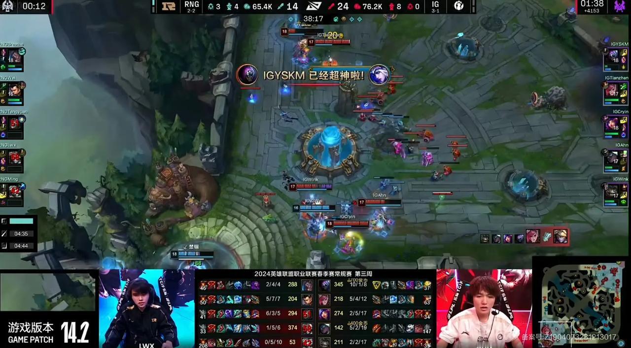 Letme怕是真要红温了!Lwx现在咋变得这么抽象呢[发怒][发怒][发怒] 2024 LPL春季赛RNG vs IG,第二局RNG在前期一度取得了巨大的经济领先,结果中期却因Lwx的走位失误被秒导致被团灭,此后YSKM的贾克斯犹如战神一般,连续超神,彻底地击碎了RNG,IG成功翻盘RNG 这EZ是正常人能打出来的操作?团战基本一个Q不中,竟然连W技能都能空掉,有闪现被开到瞬秒,说是RNG有史以来最菜AD没人会反驳吧 谁敢想象这是曾经的冠军AD?自从加入RNG之后他有C过一局?倚老卖老是吧?那RNG管理层索性还不如启用LP呢 Letme这下怕是真的要红温了,几乎每次BP都能占据优势,但大多数时候队员都不能充分执行BP的战术思路。。。 #英雄联盟[超话]#
