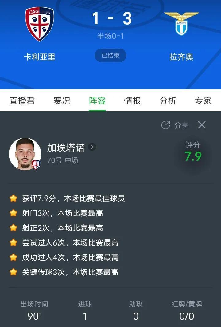 🇮🇹意大利足球🇮🇹 我贴子早说过,像加埃塔诺这种球员在中小意甲队绝对就是