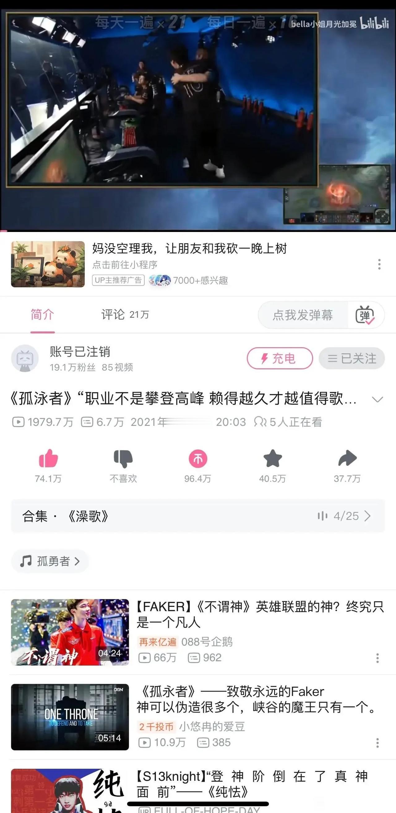 “孤泳者”作者的B站账号突然被注销了,疑似因为T1夺冠后对LPL彻底丧失了信心[捂脸][捂脸][捂脸] 在21年底,Uzi选择第二次复出加入BLG,一名B站UP主自制的一首“孤泳者”瞬间火爆网络,原因是这首用以嘲讽和整蛊Uzi的实在过于真实过于搞笑了,一时间受到了无数Uzi黑粉的狂热追捧 然而最近有网友发现,该UP主的B站账号却突然注销了,原因未知,其UP主本身也没有给出解释说明,难不成是被GSL给举报没了 按理说不应该啊?从“孤泳者”爆火的那年,UP主就一直被GSL举报,然而几年过去了却一直都平安无事,为何现在被举报封号了?况且他最近并没有发布任何有关Uzi的作品 不过也有可能是T1的夺冠令他对LPL彻底丧失了信心,因而心灰意冷决定注销了。因为在去年世界赛T1夺冠之后,该UP主就没有再发布过任何的作品,直至注销 #英雄联盟[超话]#