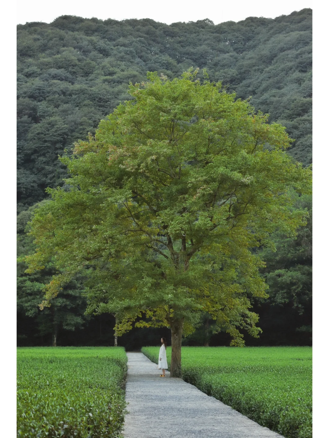 郁郁葱葱的竹林,对面有一颗孤独的树,坐在里面喝茶好舒服~