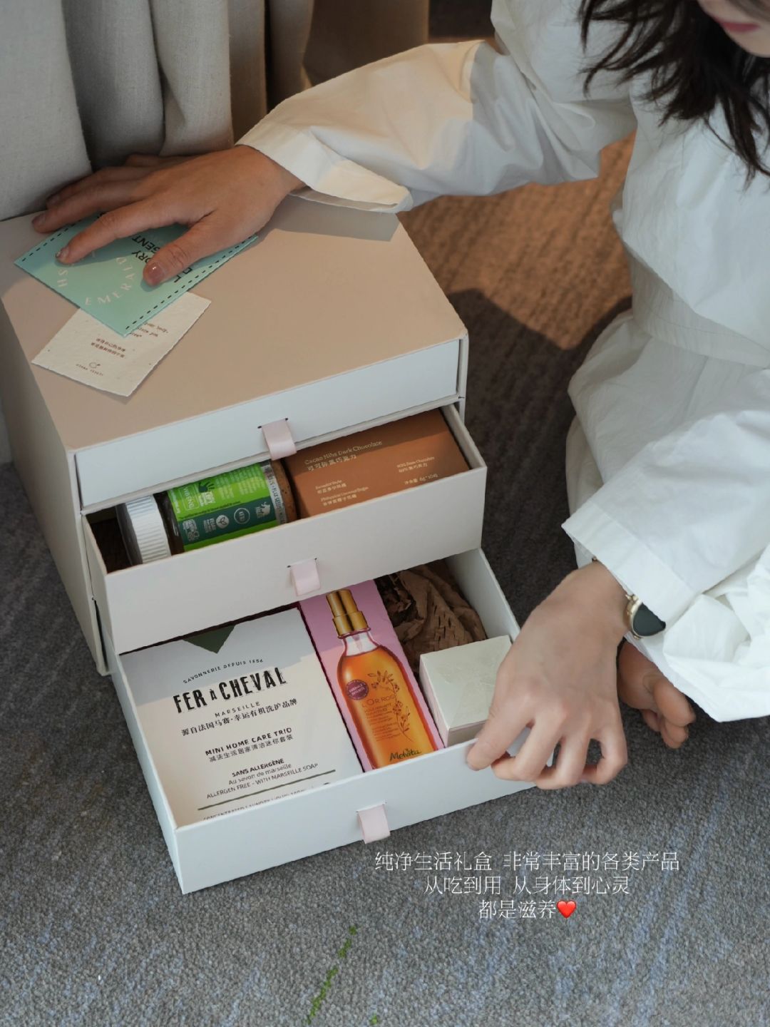 真的很用心的一个礼盒,里面有身体油,滋润霜,冥想香,健康日志等,每打开一层都有惊喜,