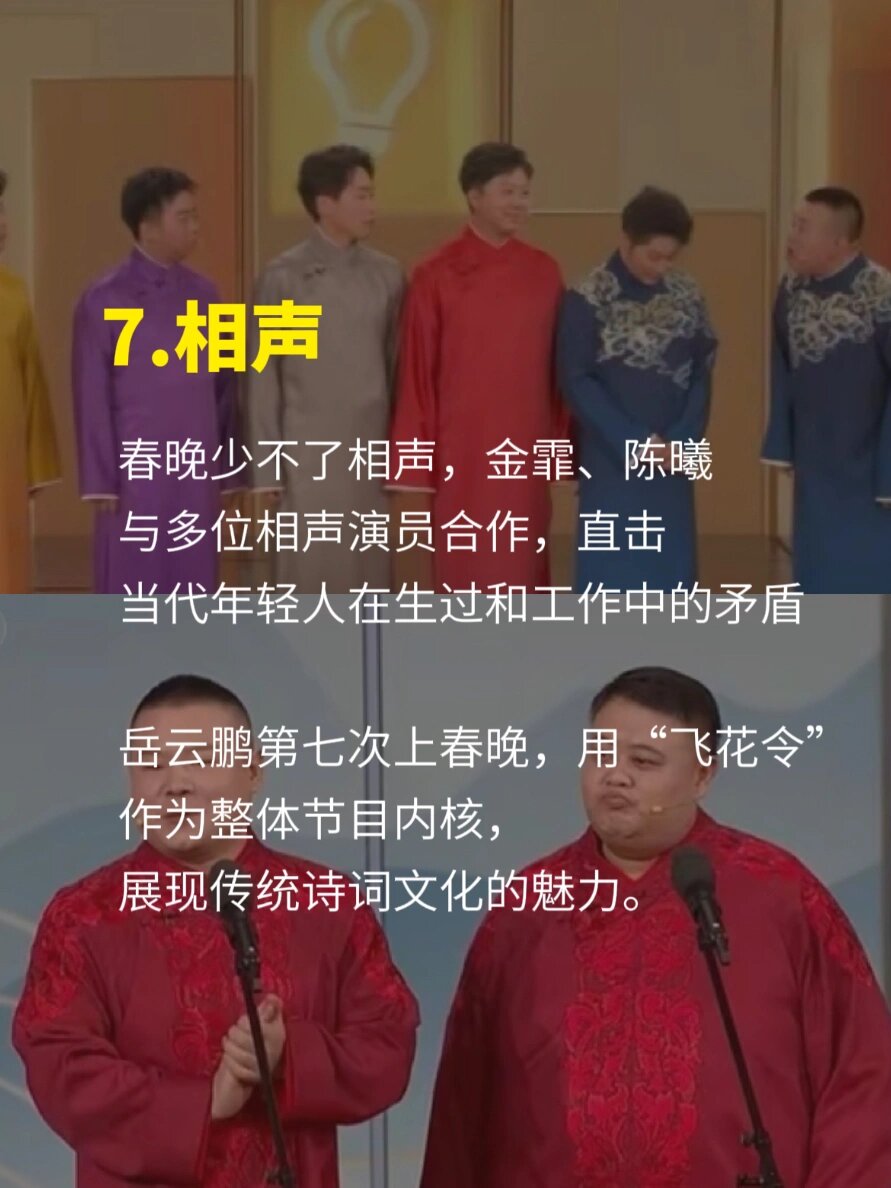 7.春晚少不了相声,金霏、陈曦与多位相声演员合作,直击当代年轻人在生过和工作中的矛盾。