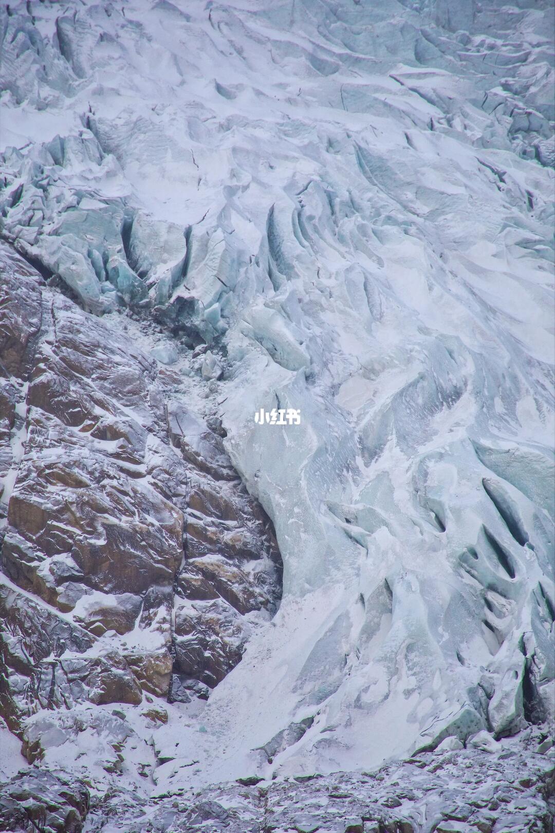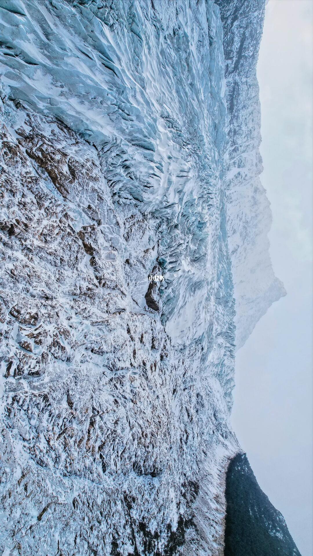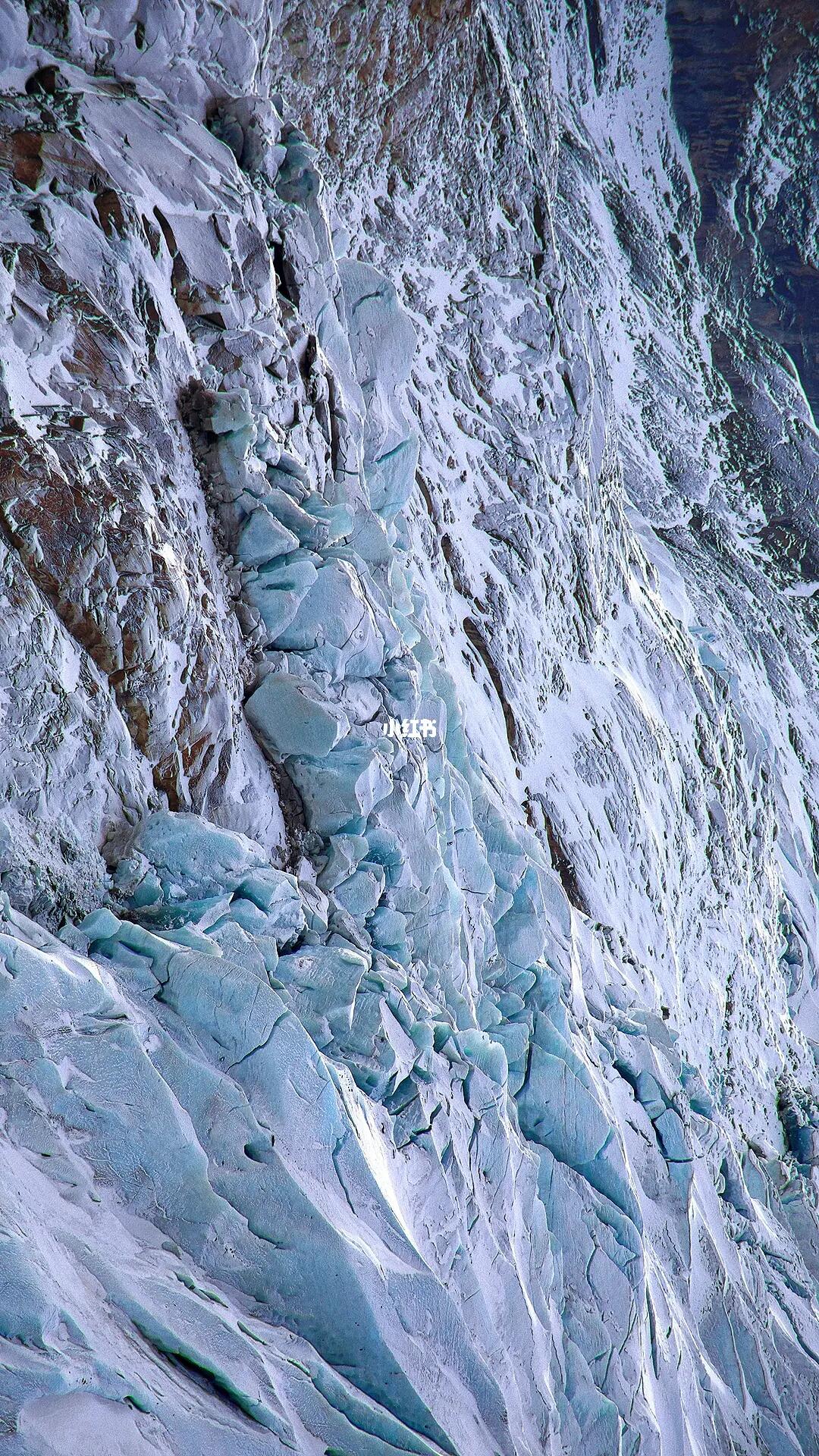 依噶是典型的大陆性冰川,巨型冰舌从山体沿着峡谷倾泻而下,像突然被按了暂停键,定格在峡谷之中,冰川流水冲蚀底部,暗流、瀑布层层叠叠