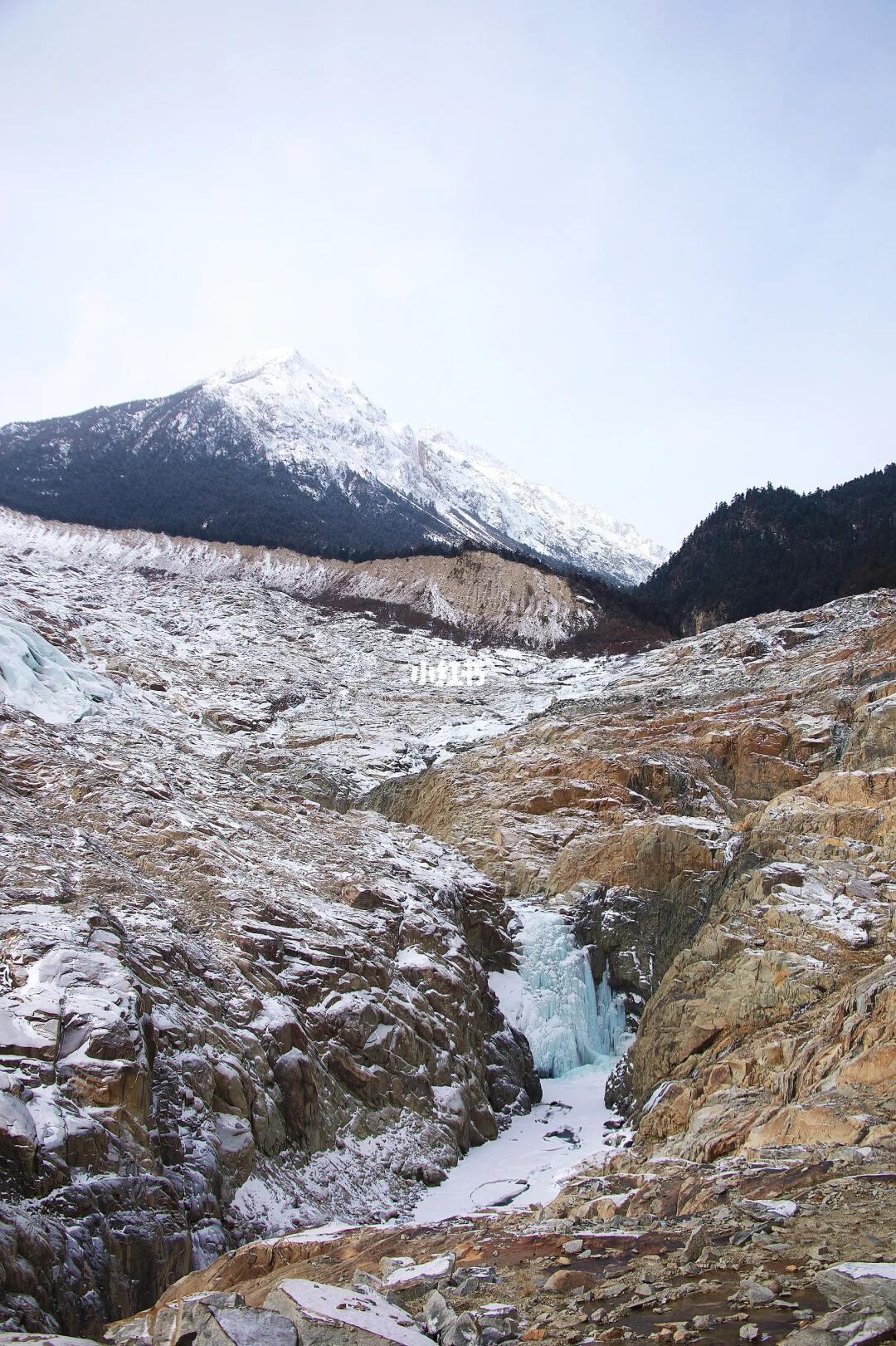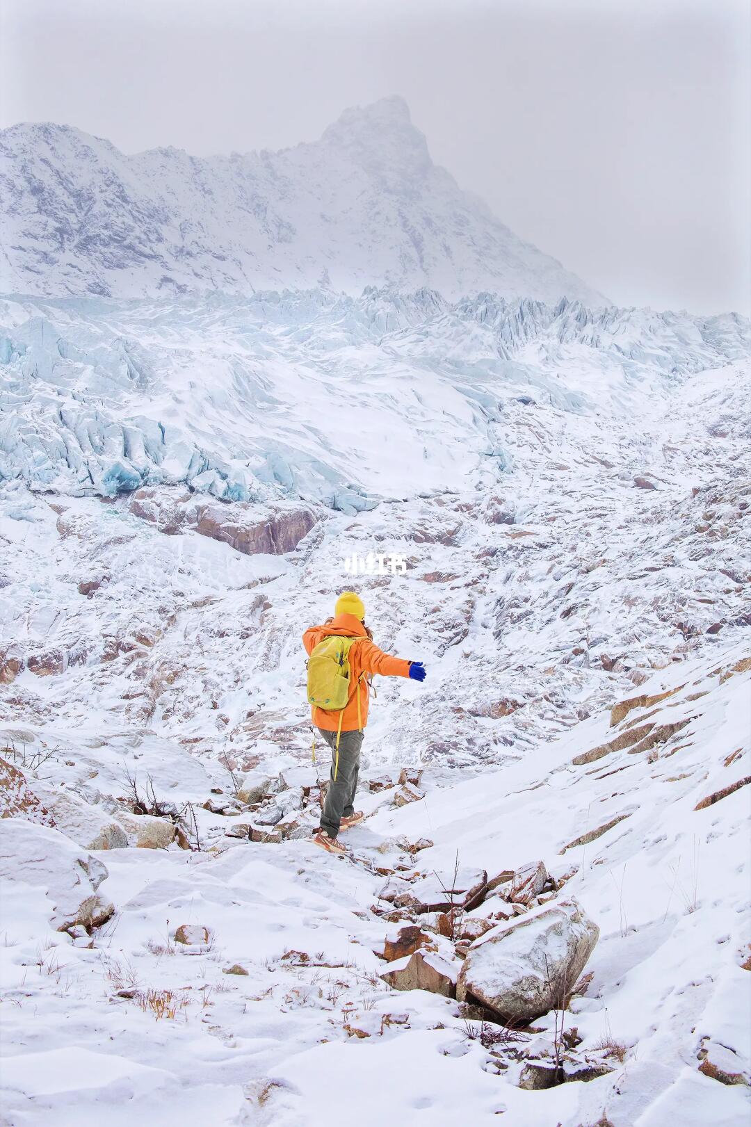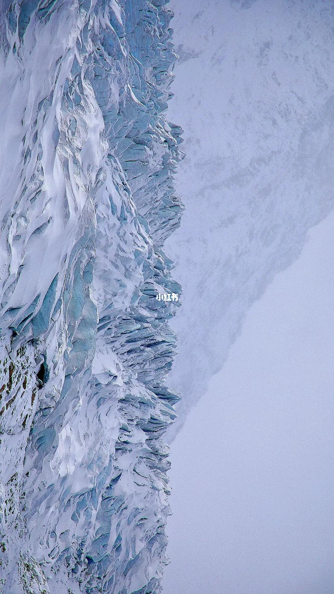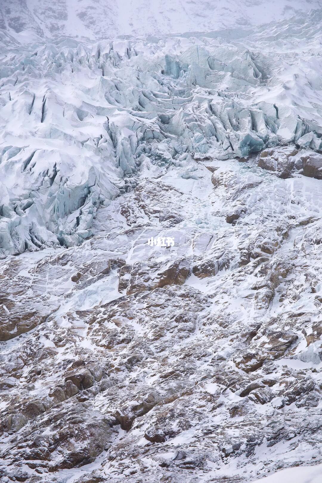 依噶是典型的大陆性冰川,巨型冰舌从山体沿着峡谷倾泻而下,像突然被按了暂停键,定格在峡谷之中,冰川流水冲蚀底部,暗流、瀑布层层叠叠