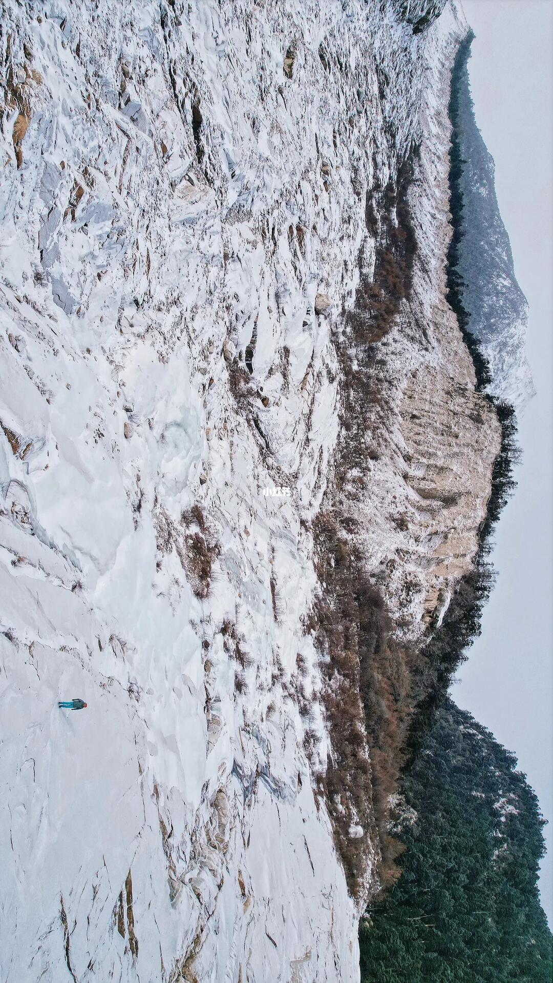 ✔冰面行走注意佩戴冰爪,留心暗河、碎冰