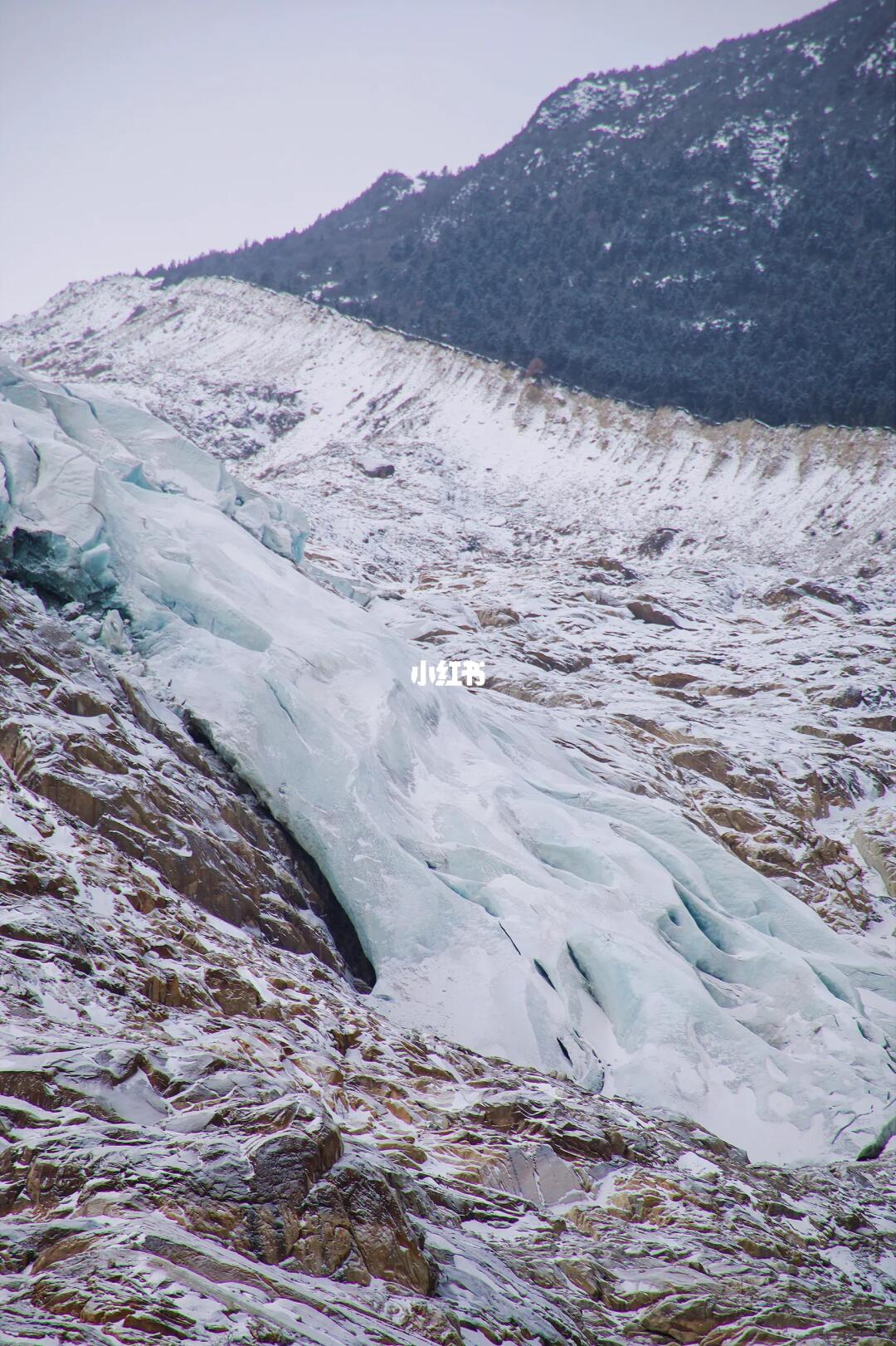 依噶冰川像蛰伏的巨龙,爬到稍高一点的地方就可以看到龙脊,一束束一层层,那么近触手可及,却又高高在上无法靠近