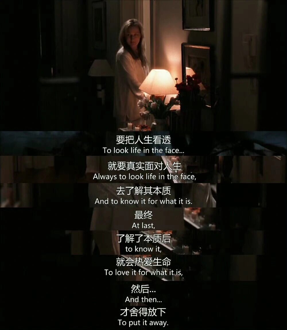 很多年前就很喜欢的一段话,直到看完这部影片,才对作者及其著作《达洛维夫人》有更深层次的认知。这是一部看完过后,后劲儿很大的影片,但也确是一部非常值得看的女性主义电影佳作。