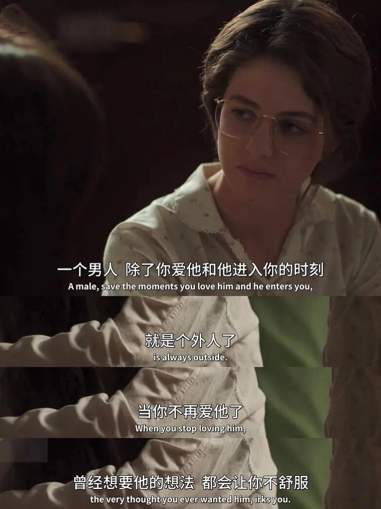 ❗️可莱农慢慢发现不管她逃得再远,站得再高,她始终摆脱不掉女性身份带来的“原罪”,生育、妻子的责任、社会的期许。