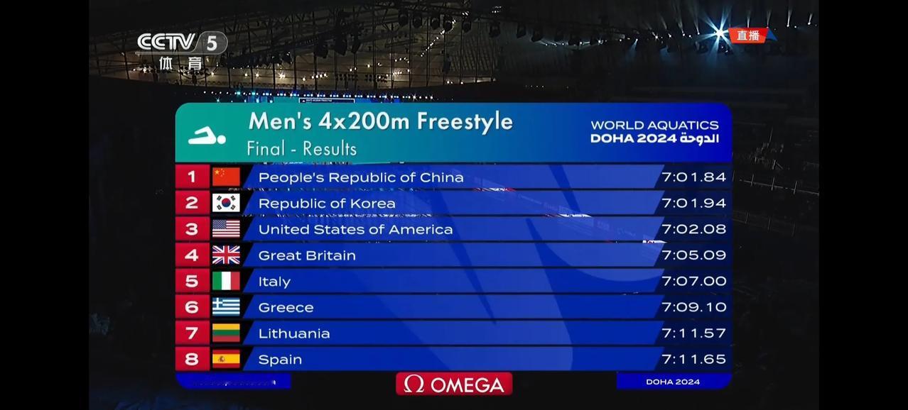 中国队历史上首次夺得男子4乘200自由泳接力世锦赛冠军!16岁的张展硕太牛了!最后一棒顶住了巨大的压力帮助中国队拿到了又一枚接力金牌!潘展乐、王浩宇和季新杰也很棒!张展硕前途无量!