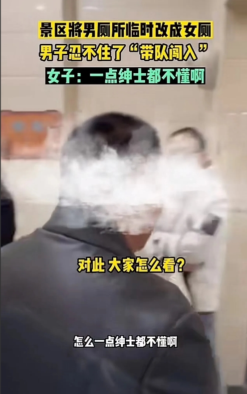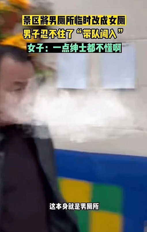 天津,景区女厕爆满,女人们排队憋红了脸,于是将“男厕”临时征用!而一个大哥忍不住了,“带队闯入”男厕,却被里面的女人指责:“你怎么一点绅士都不懂?”网友:光天化日之下,一个男的进了男厕所,怎么就不绅士了?再说绅士也得尿尿呀?