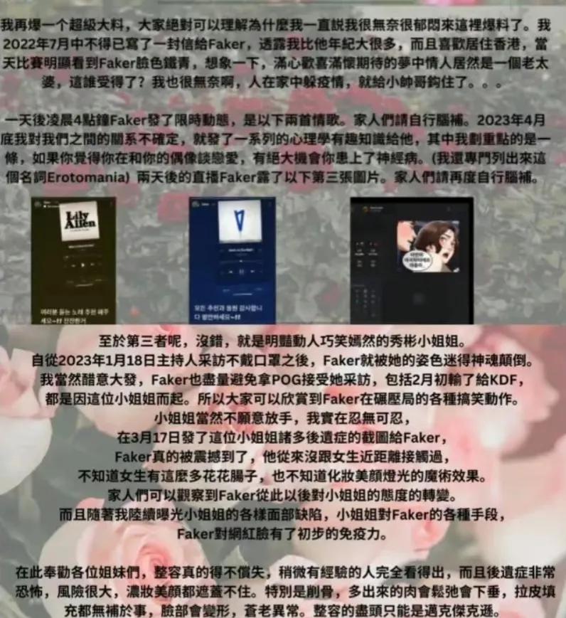 大魔王Faker疑似人设崩塌?一位自称是其未婚妻的女生发文怒斥Faker不给她名分,还跟LCK女主持尹秀彬纠缠不清[what][what][what] 近日,一位自称是Faker“未婚妻”的女生,在推特上发布一篇长文,怒斥Faker是个“渣男”,自己作为未婚妻被“雪藏”,还跟尹秀彬纠缠不清 该女生称,自己跟Faker已相恋多年,目前已经是他的未婚妻,但至今仍被“雪藏”,不肯对外公开他们的关系,也不愿跟他结婚,甚至连手机号都不给她!还表示尹秀彬跟Faker之间暧昧不清,属于“第三者”,自己想离开他,Faker也不同意,就这样进退两难地“吊”着他 同时该女生表示,自己的财富跟Faker是不相上下的,因此也不存在图他钱财这么一说 那么大家怎么看待这个问题呢?究竟是李哥真的是“渣男”,还是该女生存在一定的“精神分裂”呢[捂脸][捂脸][捂脸] #英雄联盟[超话]#
