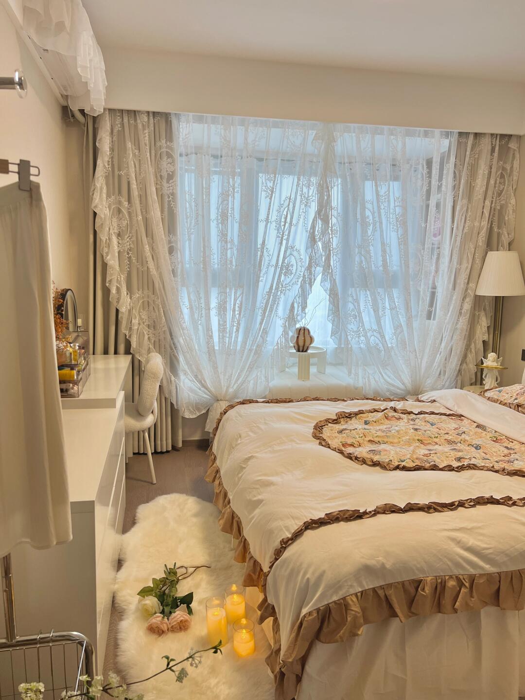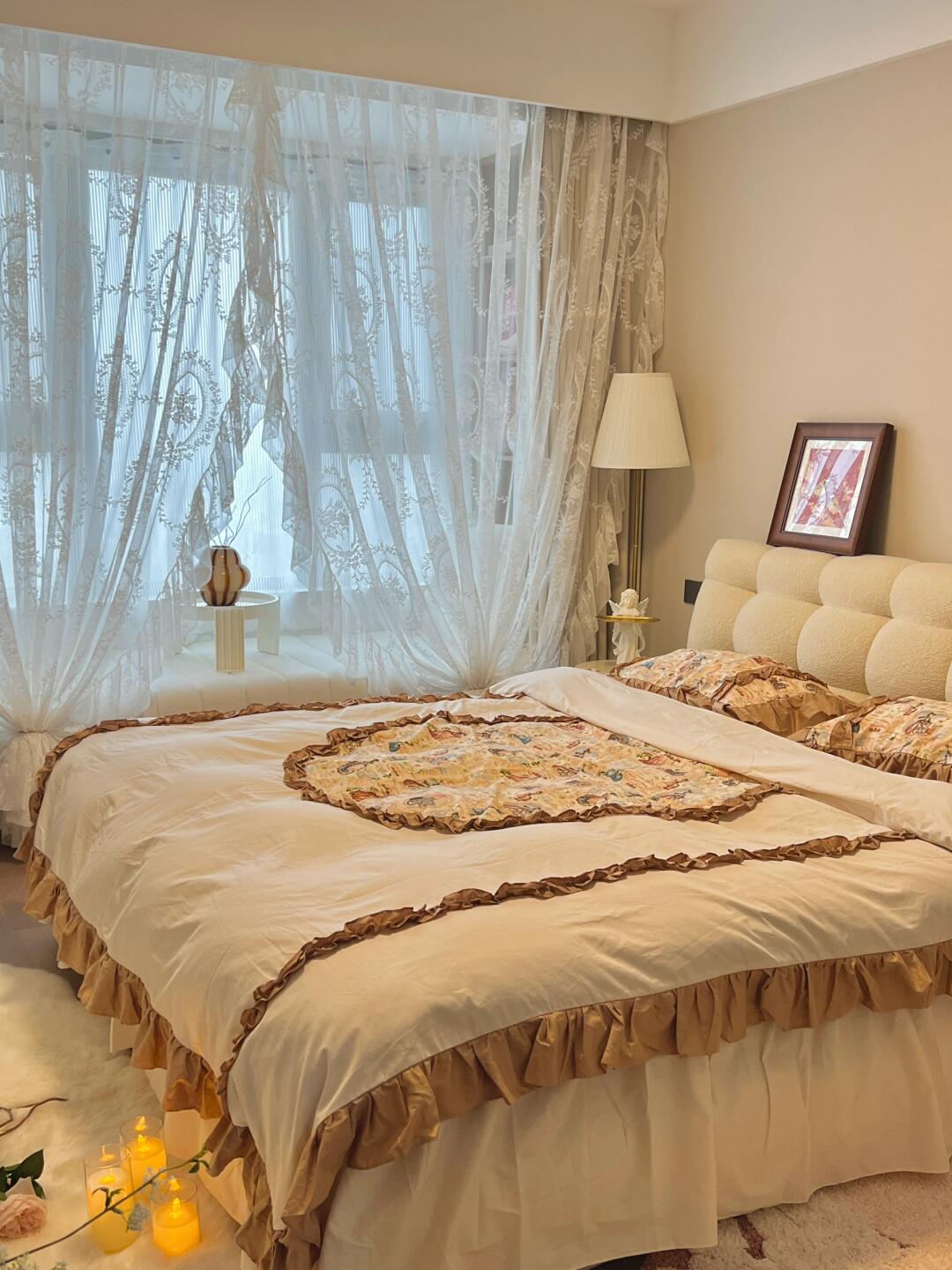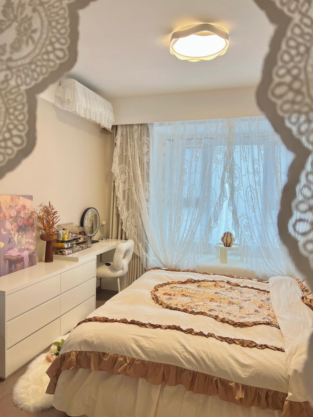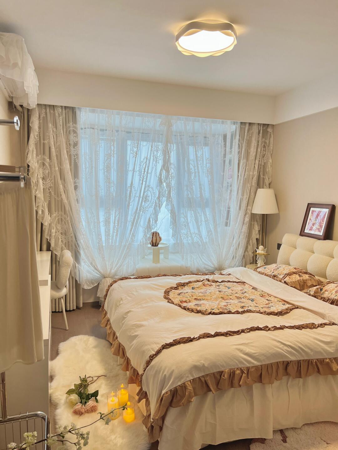 欢迎参观我的13平奶油卧室🌷 入冬之后更想宅家躺平啦~ 清晨阳光洒满飘窗垫☀️ 在温暖的被窝里睡到自然醒 就是冬日的小确幸🍾️ · 趁着天气正好☁️ 给软软的棉花糖床 换上法式复古四件套 搭配花边吸顶灯💡 奶呼呼的温柔又浪漫💕 · 其实,卧室不需要多复杂的装饰 阳光就是最好的风景🌅