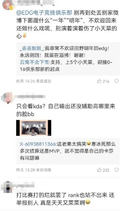 这就“恩断义绝”了?Meiko粉丝竟然爆破EDG官博,至于吗? 事情的起因是EDG二队上单Solokiin在一次韩服排位中偶遇了Meiko(两人搭配下路,一个使用卡莎,一个使用寒冰),而比赛过程中由于频繁寻找机会+走位失误,Meiko寒冰被“击杀”了六次,虽然赢了,但也只是躺赢,而Solokiin卡莎则拿到了MVP 然而Solokiin居然嫌弃Meiko被“击杀”次数太多了,在比赛结束后竟然将Meiko给举报了,此番操作瞬间惹怒了Meiko粉丝,纷纷跑到EDG官博下怒斥Solokiin,甚至要求EDG官方为了已经离队的Meiko处罚Solokiin 其实从对局表现和赛后评分来看,Solokiin举报Meiko完全是在情理之中的,一个软辅,竟然死了整整13次,评分全场最低,输出更是低到可怜,Meiko这场的发挥确实是灾难级的 但Solokiin的此番举动,只能说明他的情商实在是太低了,Meiko和EDG之间的关系本身就十分敏感,况且自己还作为EDG的选手,怎能因为一场排位就举报别人?太不懂人情世故了[捂脸][捂脸][捂脸] #英雄联盟[超话]#
