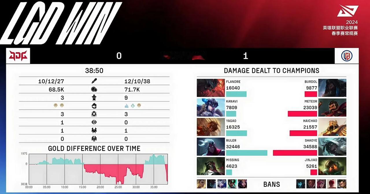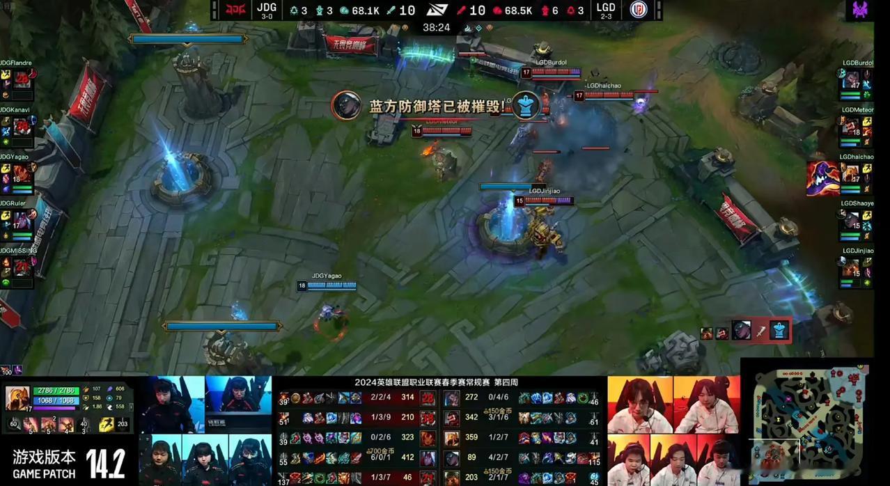 强队杀手LGD果然名不虚传,竟然将JDG给运营麻了[哈欠][哈欠][哈欠] 2024 LPL春季赛LGD vs JDG,本以为是一边倒的碾压局,没想到JDG竟然翻车了,双方经过长达38分钟的鏖战,LDG竟然爆冷击败了JDG,拿到第一局比赛的胜利 该说不说,Shaoye的赛娜玩的确实挺6,竟然在前期能把赛娜玩出巴德的效果,各种游走支援,思路奇特,致使JDG来到中期完全处理不了在前期独自发育的泰坦 LGD在这场比赛中体现出的运营水平简直令人头皮发麻,各种跟对手交换资源,还总能做到不亏甚至是小赚,JDG纯粹是被对方给运营玩死了 转线、置换资源等这些运营思路,一直以来都是JDG的短板,只是没想到会在LGD身上翻车了 #英雄联盟[超话]#