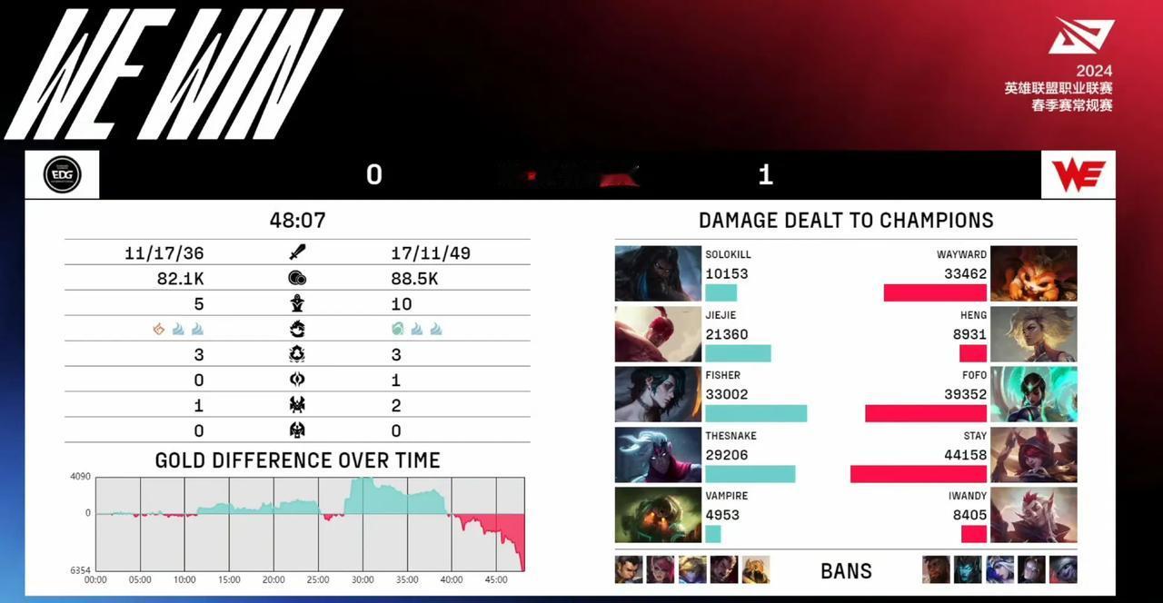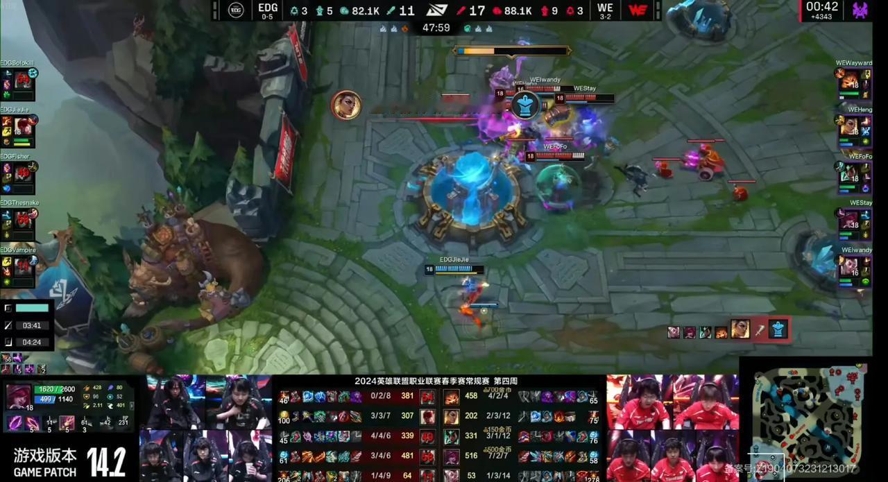 EDG的比赛,真就全是享受!Jiejie太累了,真该好好休息一下了[尬笑][尬笑][尬笑] 2024 LPL春季赛EDG vs WE,第一局比赛EDG再现大优势被翻盘,中期一度领先4K经济,并成功拿下了大龙,但中期一波突然发病直接把优势全送没了,紧接着就是被翻盘 看完比赛,只想说Jiejie快跑吧,如今的EDG跟个牢笼没啥区别了,继续留下只能是徒劳地浪费自己的职业生涯 其实作为EDG粉丝早就该看开了,毕竟曾经也算风光过,该拿到的荣誉都拿到了,就随他去吧,摆烂就摆烂吧[流泪][流泪][流泪] #英雄联盟[超话]#