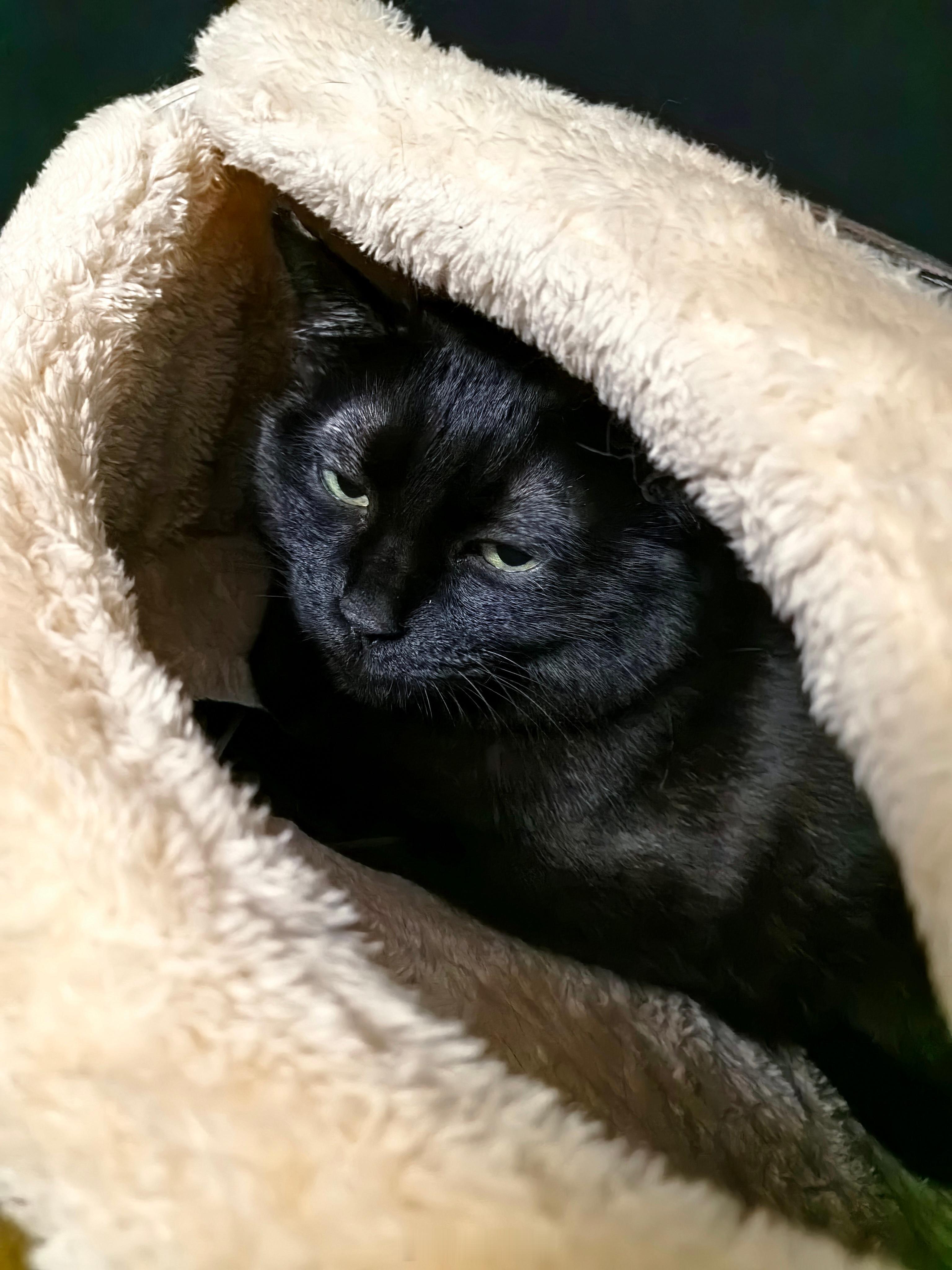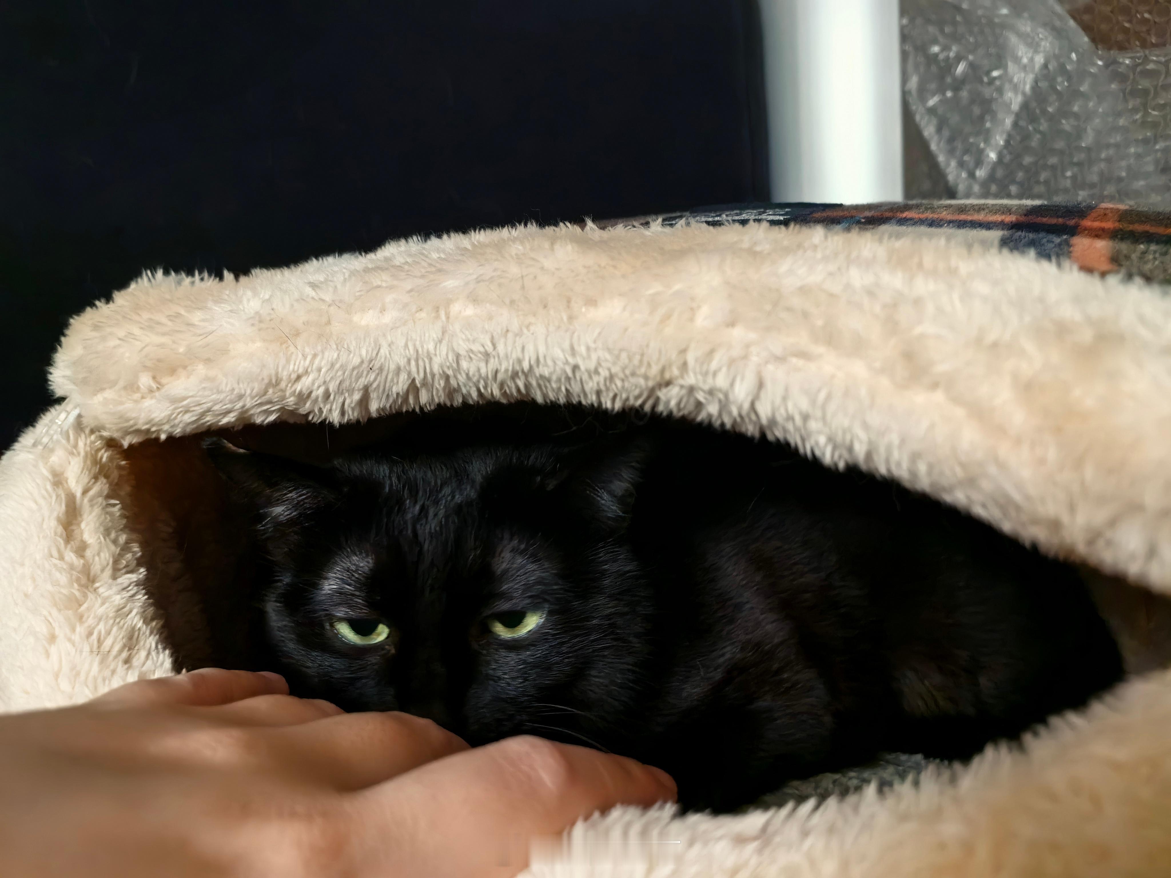 沙發上平放一顆抱枕+兩張毯毯+蝦味就可以讓老寶睡到翻過企~