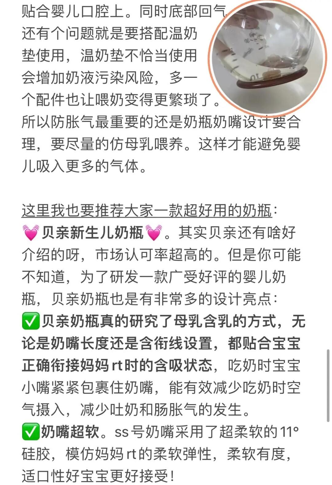 贝亲奶嘴上的含衔线可以引导宝宝正确含接,减少空气进入,奶嘴材质也十分柔软,接近妈妈rt的弹性,宝宝非常容易接受。这款奶瓶久经市场考验,是不会踩雷的经典款。