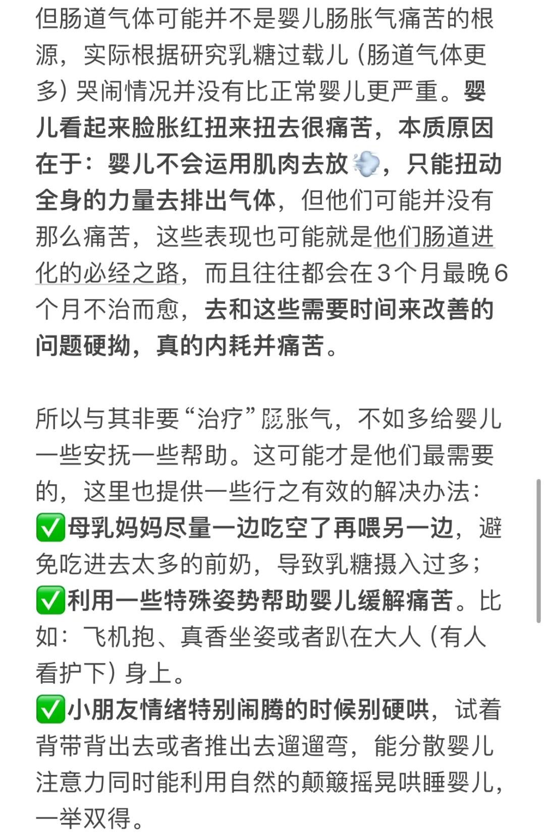 对于很多妈妈很痛苦的肠胀气来说。其实宝宝挣扎💨、脸憋的通红不一定是因为很痛苦,而是小宝宝也需要去学会自己控制肌肉放💨,同时肠道也需要时间去发育。