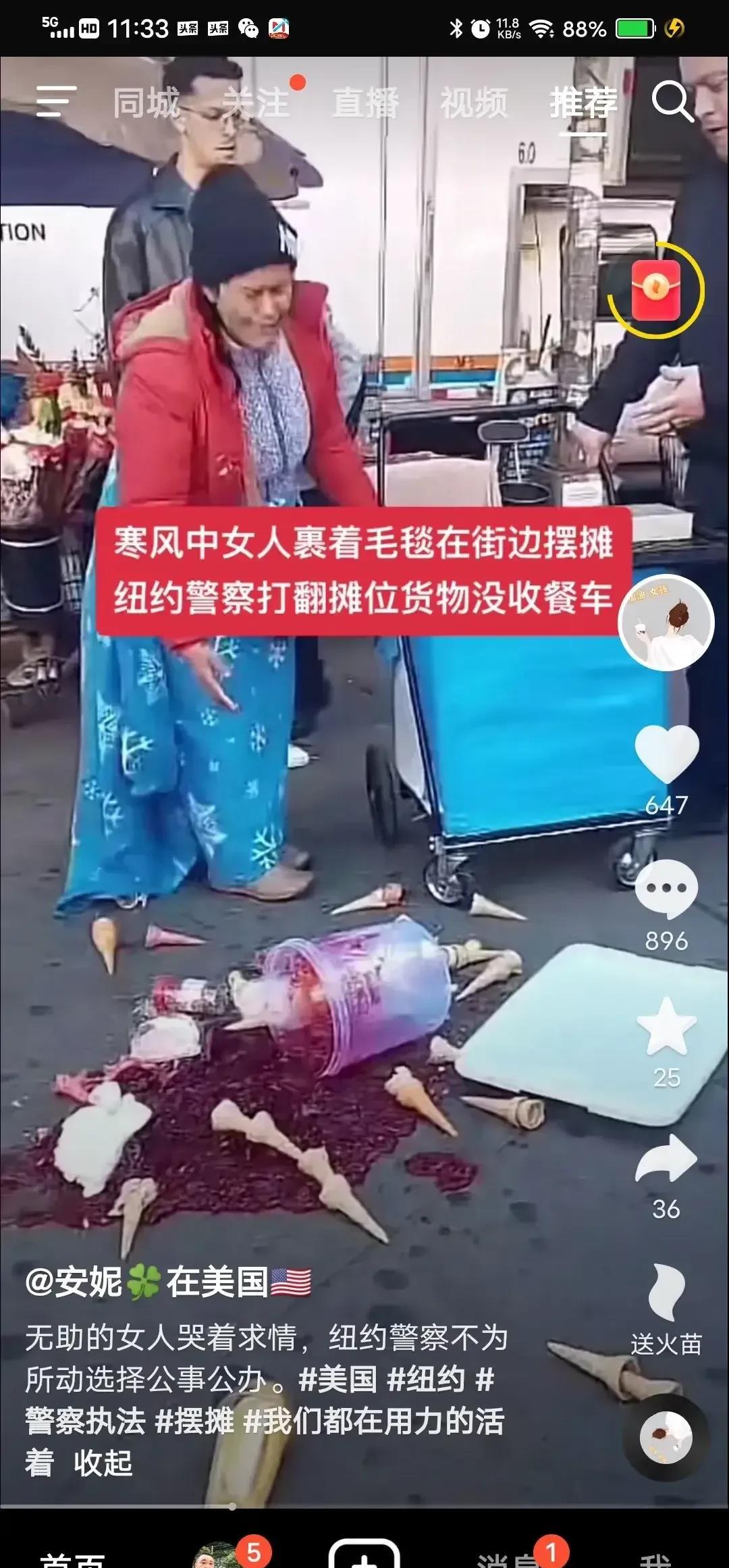 纽约华人小商贩摆摊,纽约警察直接没收东西,华人商贩积极配合搬东西,没有任何怨言,通情达理,还有华人商贩大冷天裹毛巾摆摊卖小吃,东西直接被纽约警察掀翻在地,没收小推车,华人商贩哭着苦苦哀求纽约警察不要没收它唯一的谋生工具,但纽约警察警告它赶紧离开,不要阻拦,华人商贩只能可怜兮兮地离开,看着自己的谋生工具被收走,全程连围观的人都很少,也没有人起哄阻止纽约警察的冷酷无情,大家都通情达理,因为纽约警察腰里别着枪呢!
