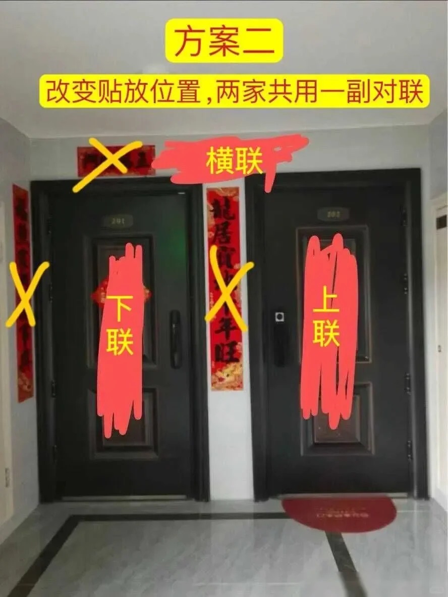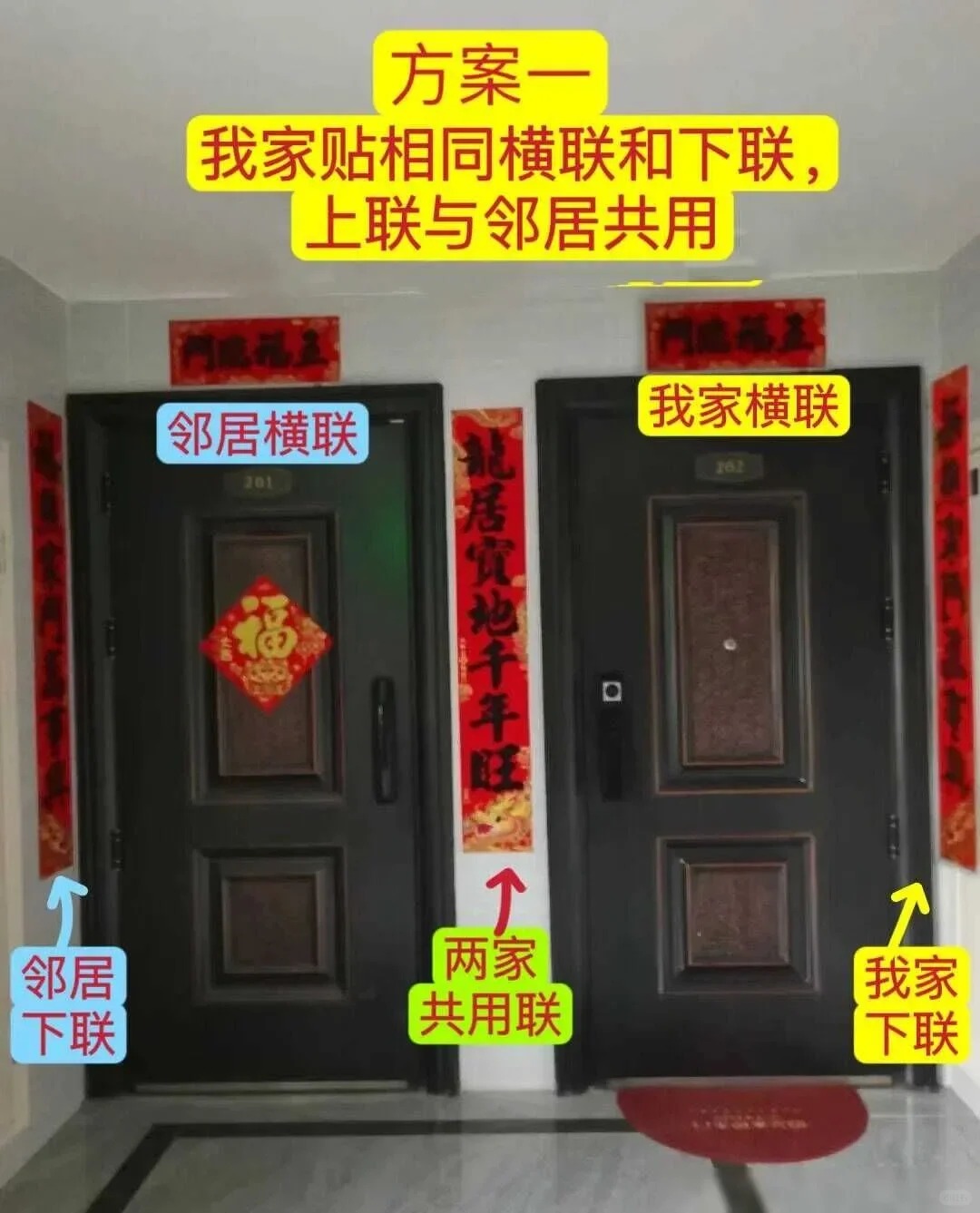 如果邻居没贴,那请问你两幅对联准备怎么贴?!你先贴了,也就意味着你的邻居也有上联或下联无处可贴的困惑!所以这种情况,都不贴最好!