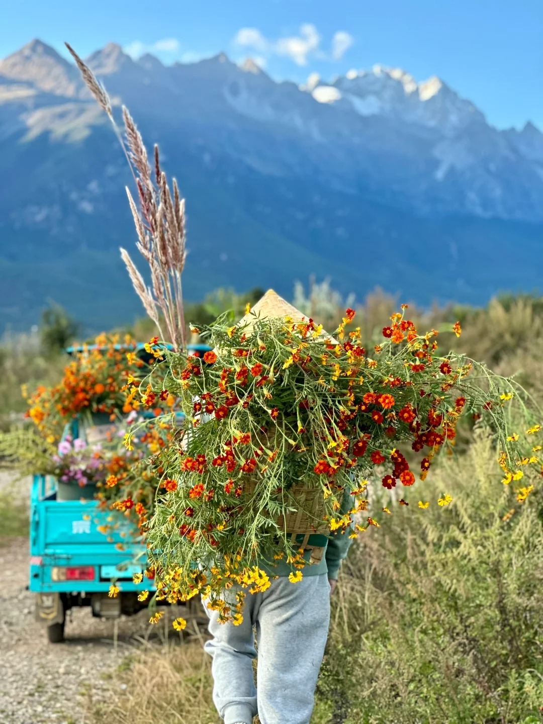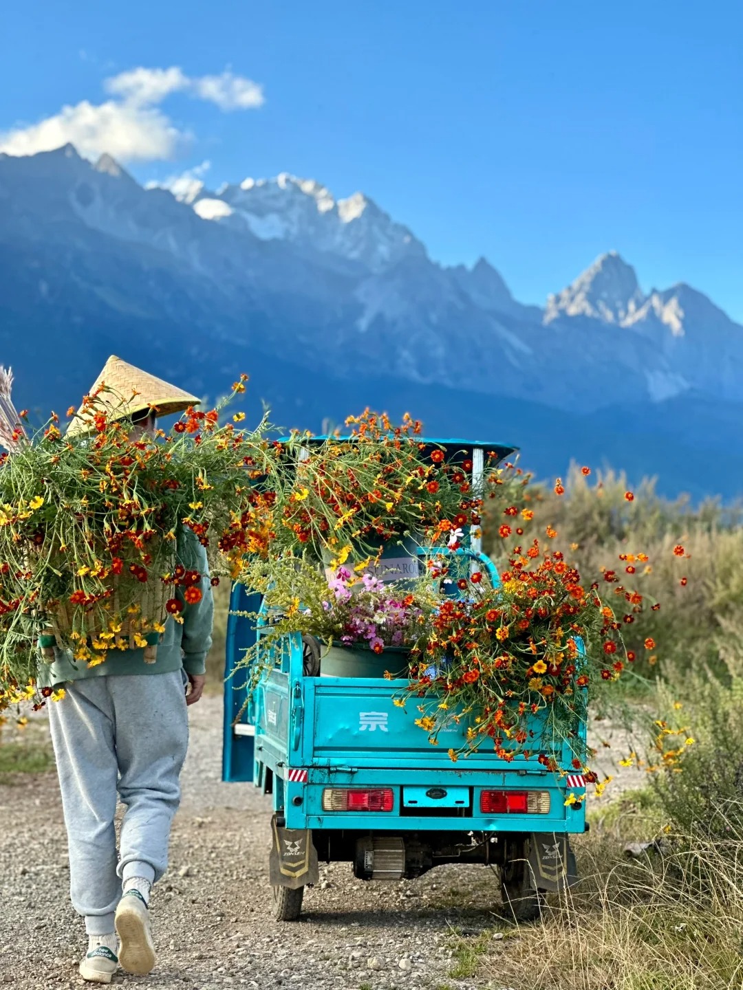 一张封神太少,那就来个十张吧 在雪山下租了一个院子 那天去倒垃圾的路上偶遇一片花海 于是采回家 发了一篇笔记,网友说一张直接封神 有网友说要拿去当朋友圈封面 还有网友说拿去当画画的素材 我说“拿吧”