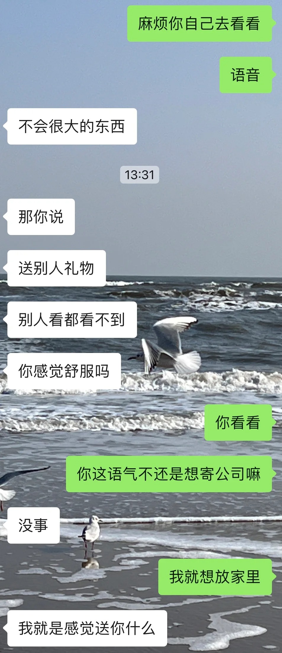我跟我男朋友谁的错 不想多说了一个礼物磨磨唧唧自己想寄公司让我天天看着就直说